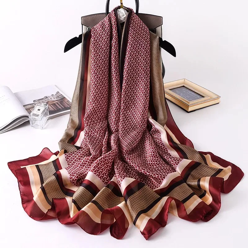 Классический женский шелковый шарф, женские шарфы, женская Пляжная ...