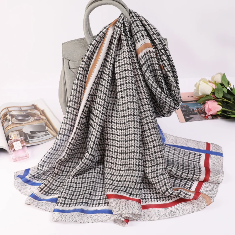 Новый Шелковый шарф с принтом гусиная лапка, Женская шаль весна-лет...