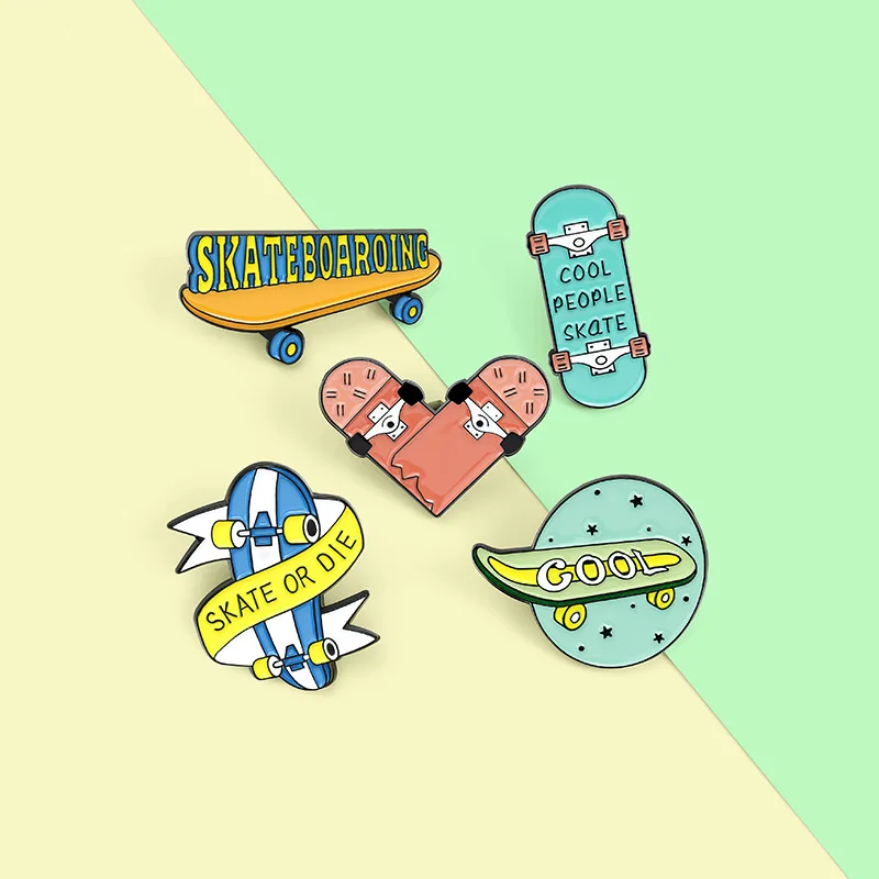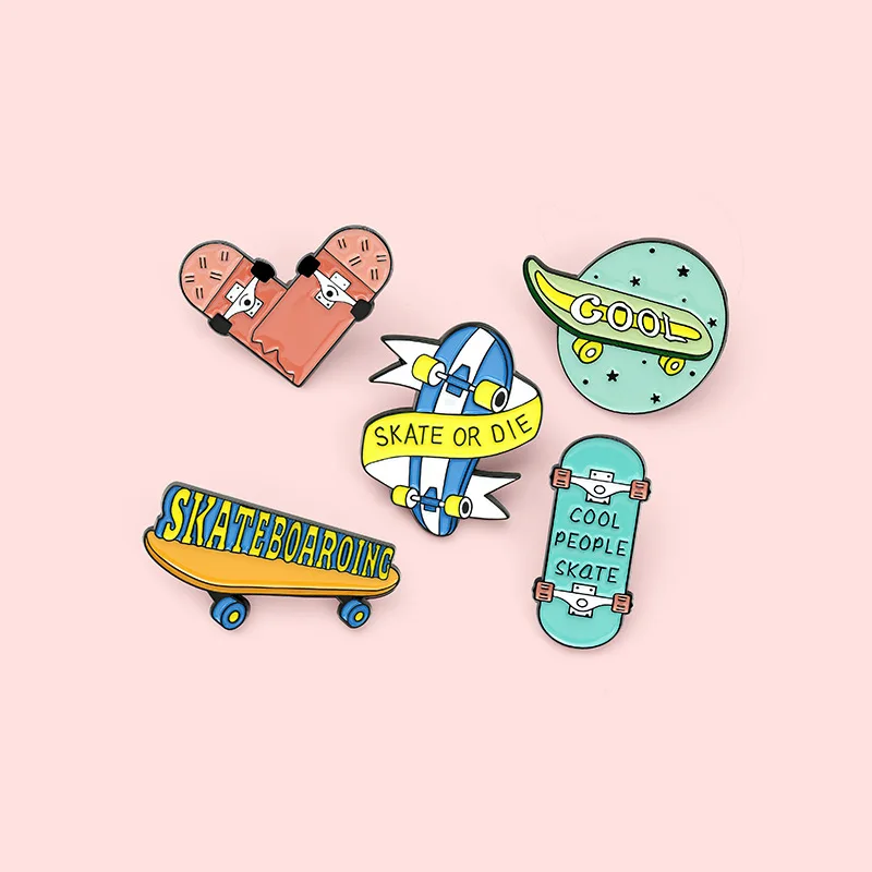Брошь скейтборд, эмалированная булавка для пальто, женская брошь на воротник, джинсовая булавка, металлическая брошь для одежды, Женская Брошь, значки на рюкзак, Ювелирное Украшение