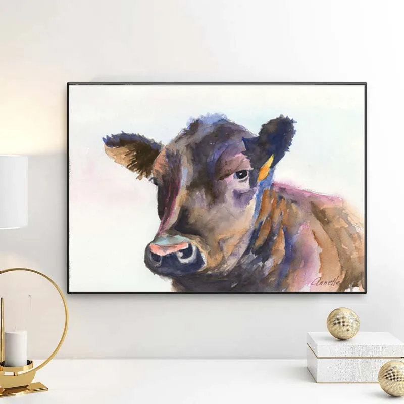 Современная Картина на холсте с изображением коровы, животных, Мультяшные плакаты и принты, квадратные картины на стену для гостиной, украшение для дома