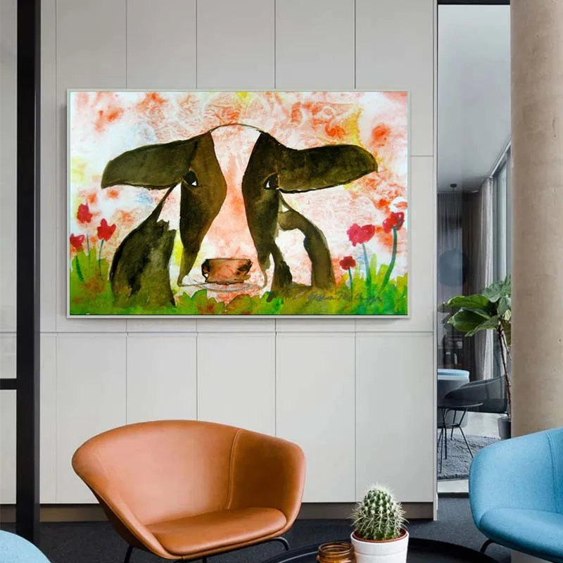Абстрактная живопись маслом на холсте окрашенная Корова печать на х...