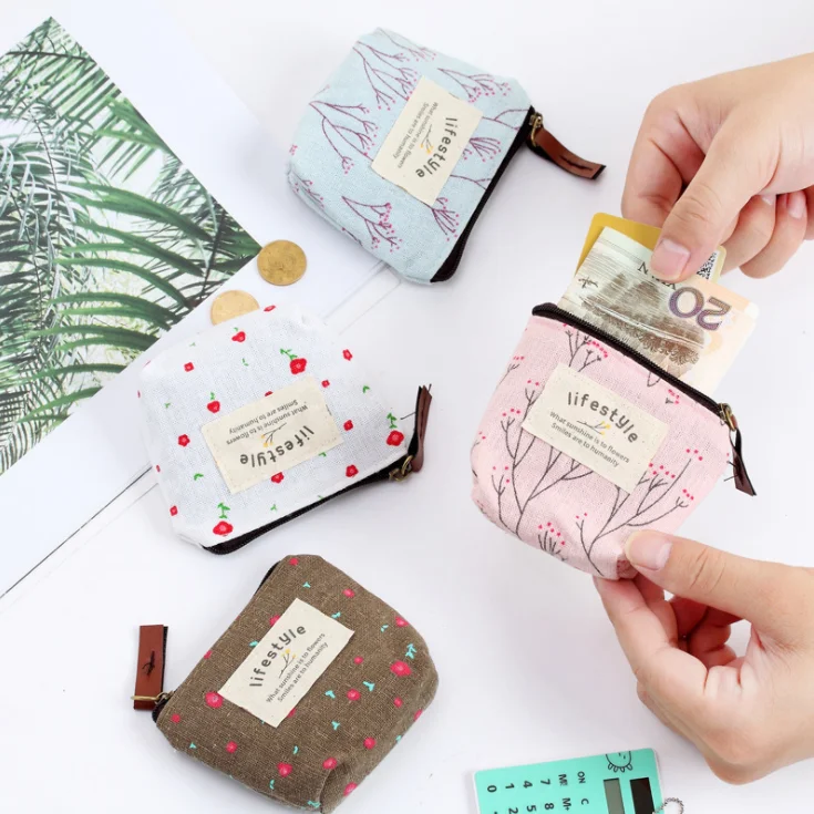 Холщовый кошелек для женщин, миниатюрная Цветочная Сумочка для карт...