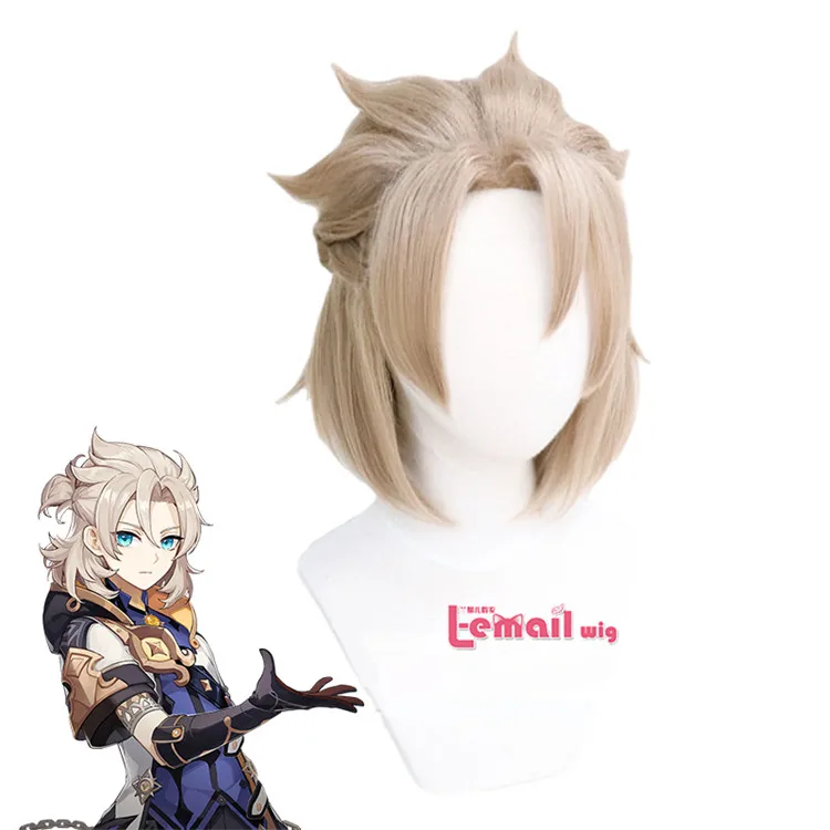 L-email парик игра Genshin Impact Albedo Косплей парики коричневый косплей парик короткий косички термостойкие синтетические волосы Хэллоуин светильник