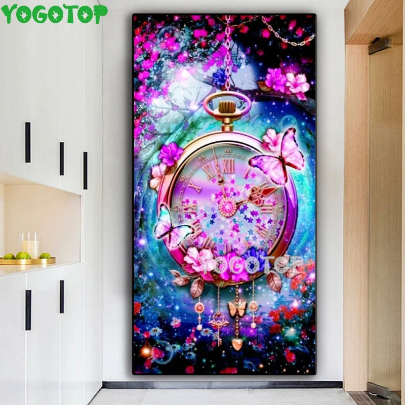 5D DIY алмазная живопись часы мечты Бабочка Красные цветы абстрактная вышивка крестиком Мозаика квадратная круглая Алмазная вышивка YY4839