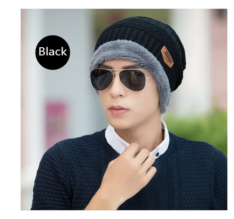 Горячая Распродажа 2 шт. Лыжная шапка и шарф холодная теплая кожаная мужская Трикотажная шапка головной убор теплая шапка шапочки облегающие шапки