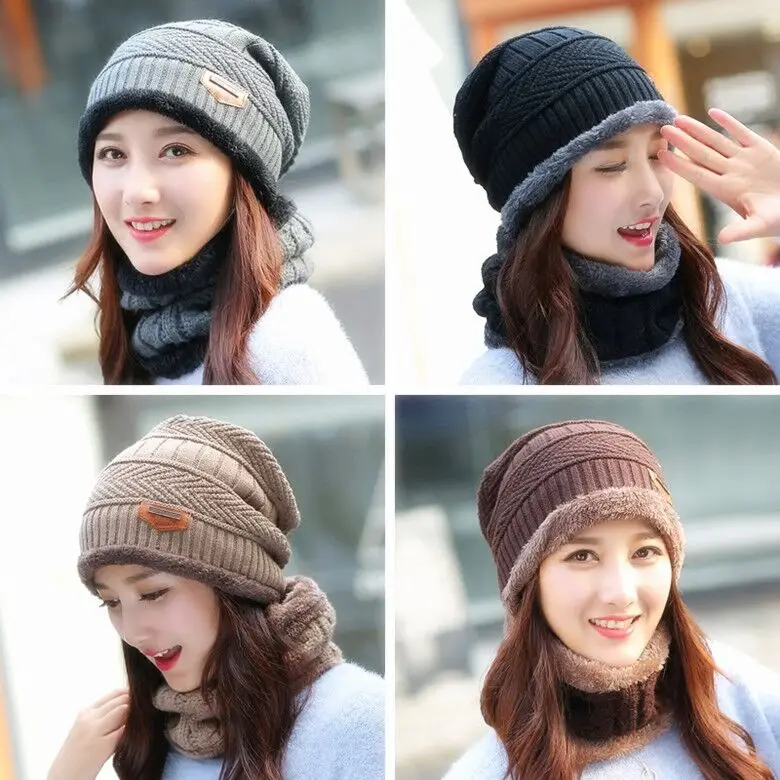 Горячая Распродажа 2 шт. Лыжная шапка и шарф холодная теплая кожана...