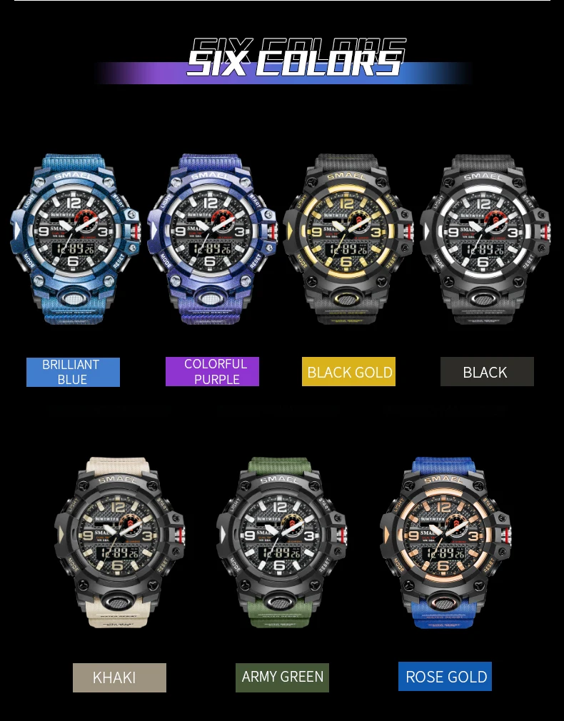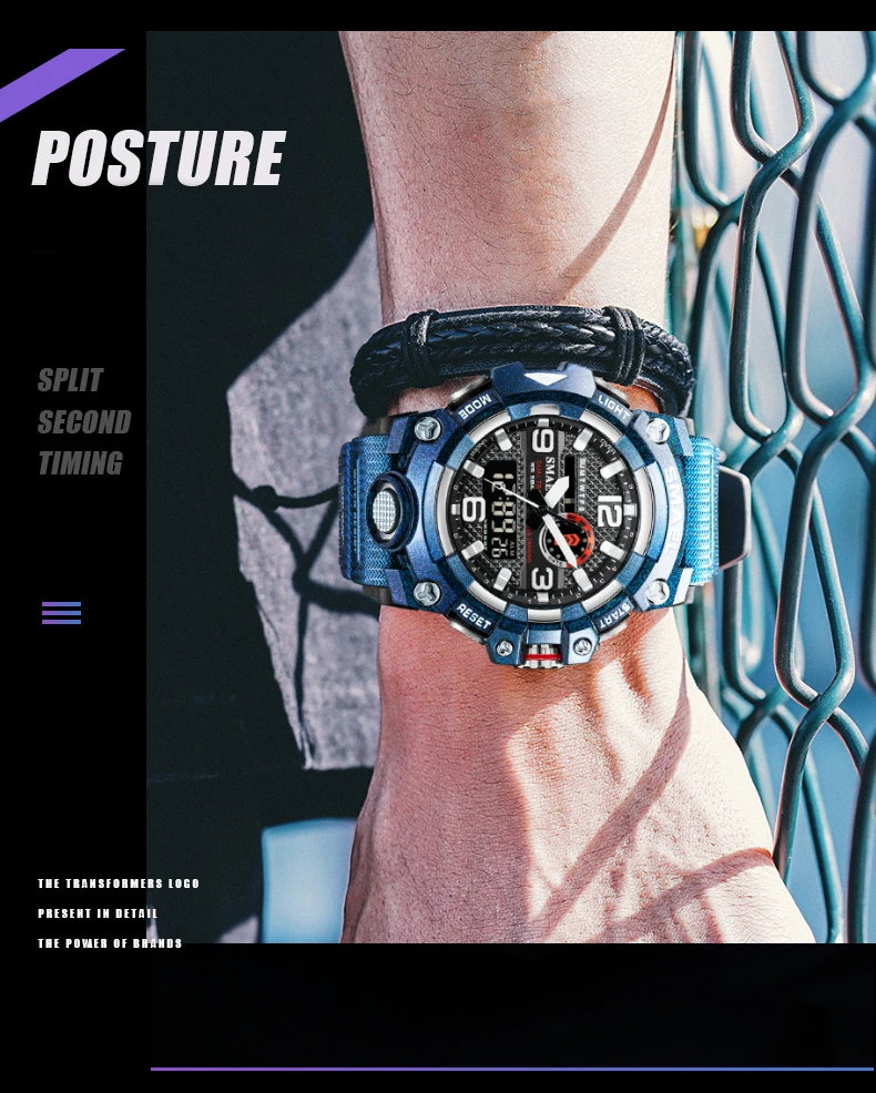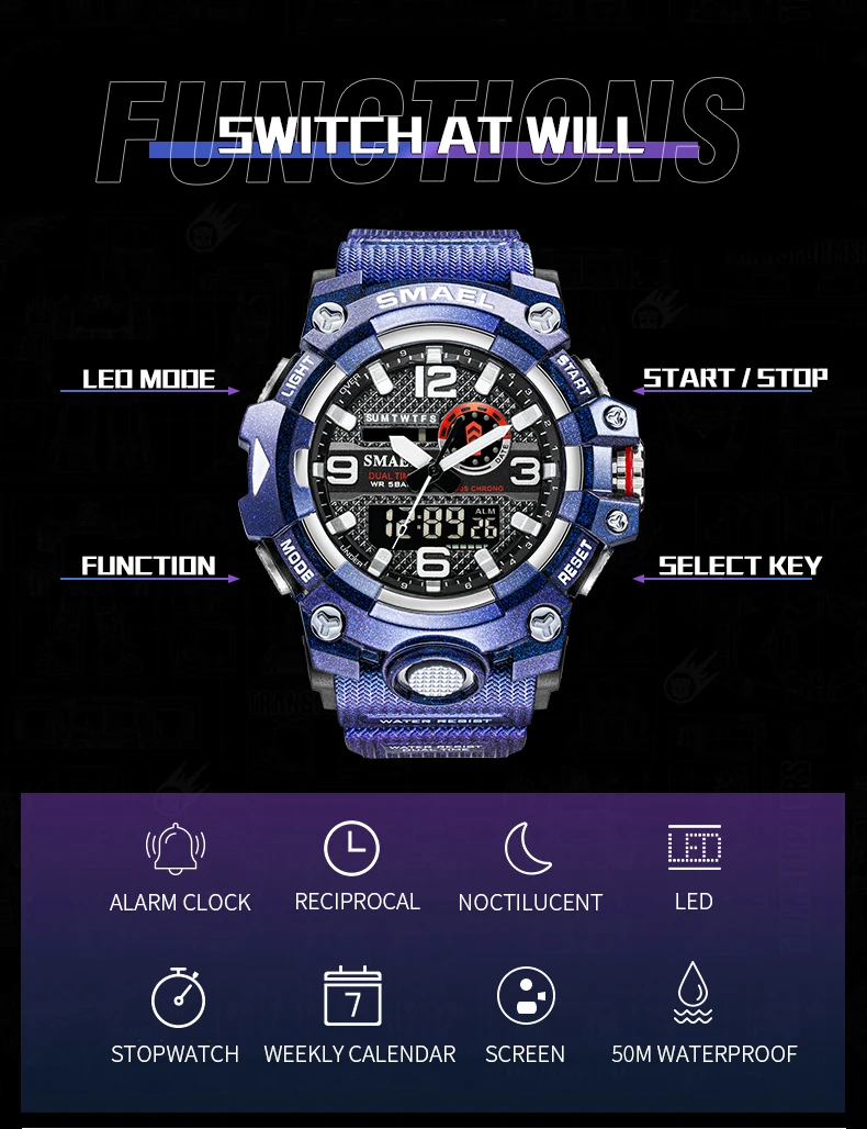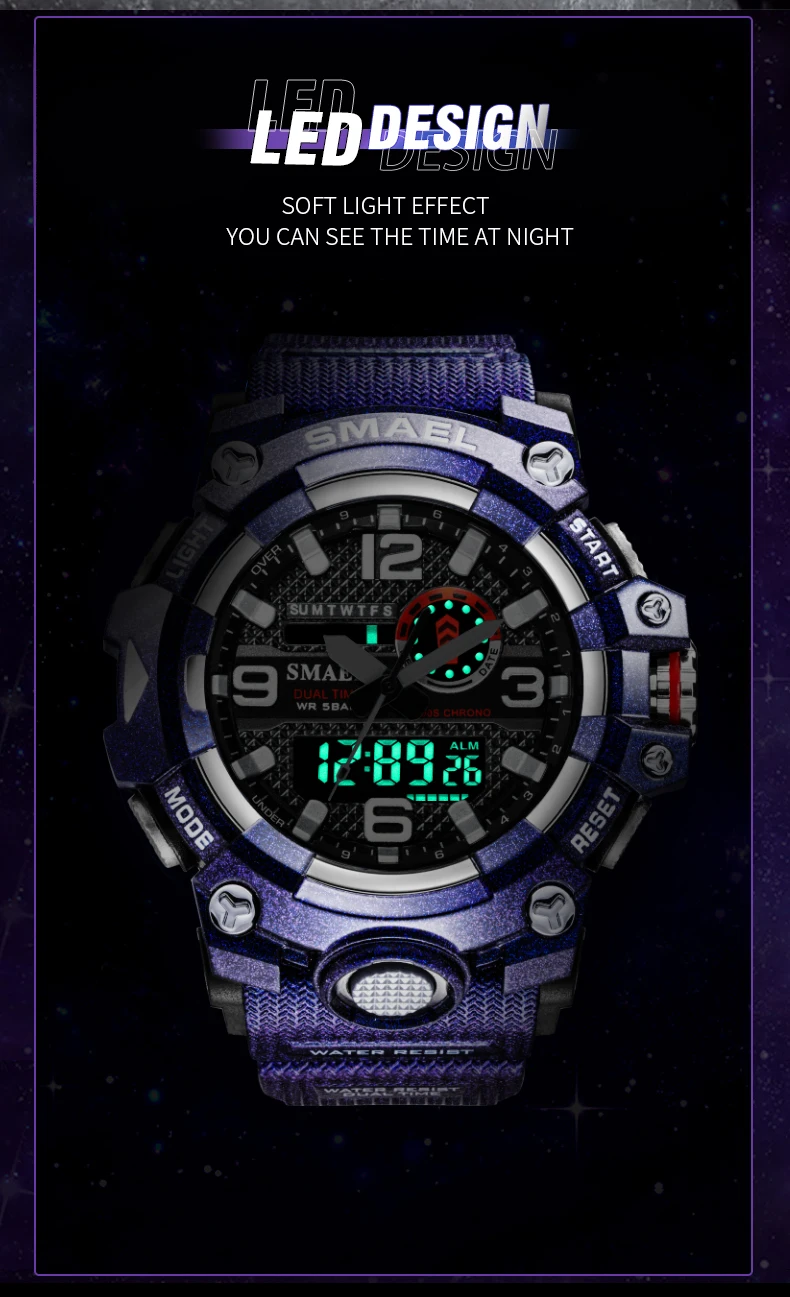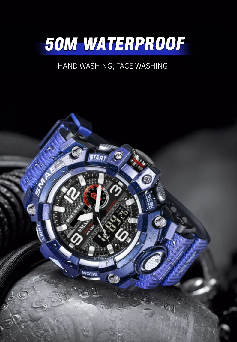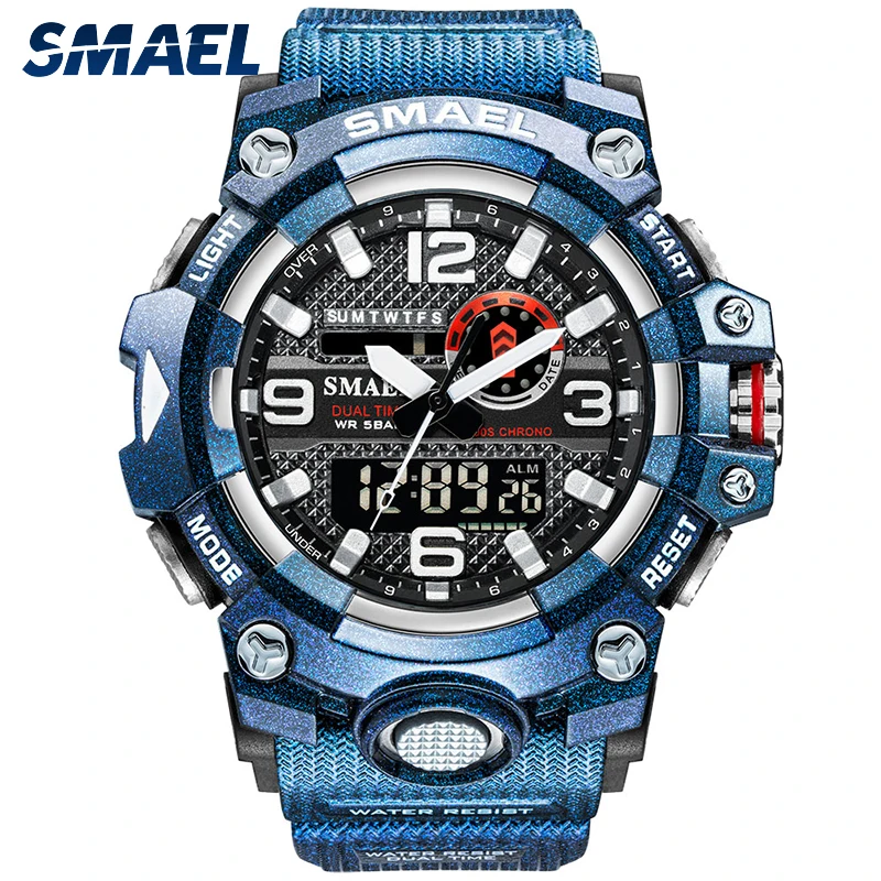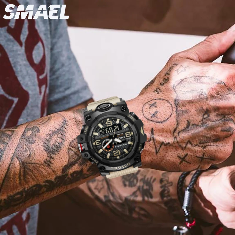 Часы SMAEL Мужские Наручные с хронографом, модные спортивные Роскошные водонепроницаемые в современном стиле, с двойным механизмом, 2021, 8035