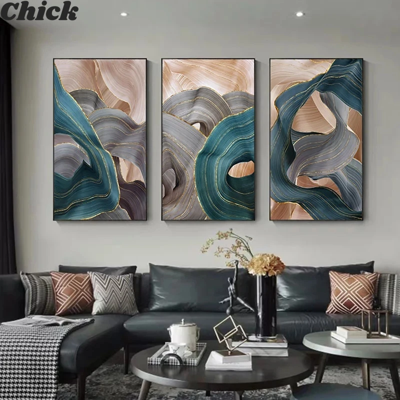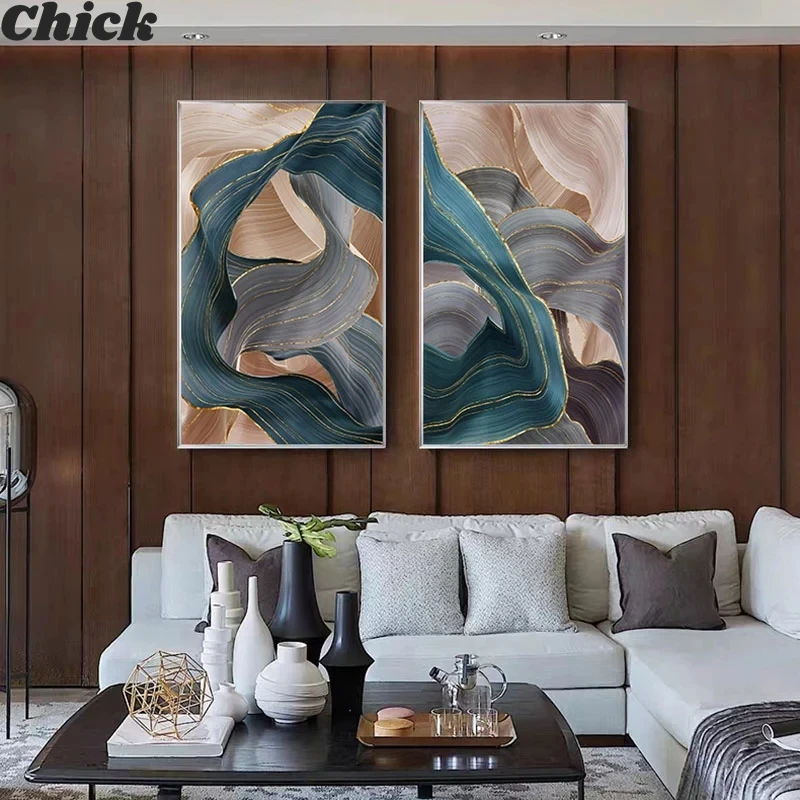 Скандинавская Картина на холсте Современные Абстрактные Роскошные Ленточные плакаты, печатные настенные картины для гостиной, спальни, Декор, золотой художественный плакат