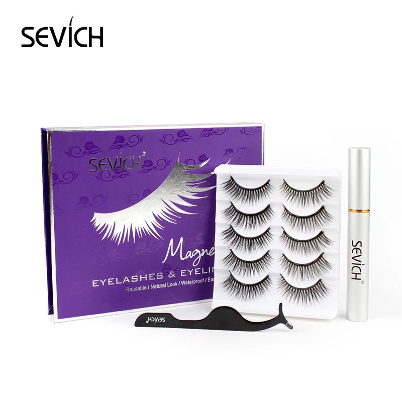 Набор Магнитных ресниц 5 пар, жидкая подводка для глаз, набор магнитных ресниц и пинцет, водонепроницаемые, стойкие, для наращивания ресниц, TSLM1
