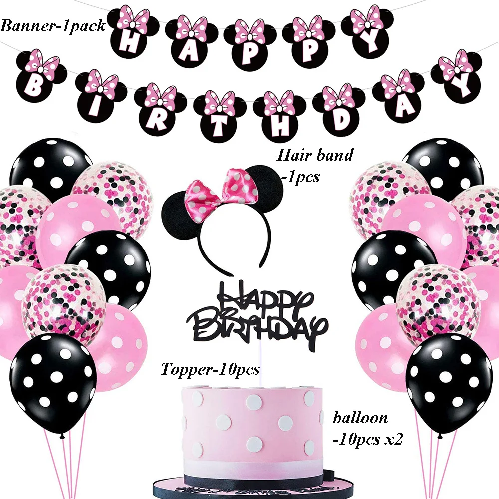 Праздничные атрибуты для дня рождения с изображением Минни Маус, ро...