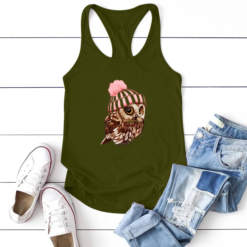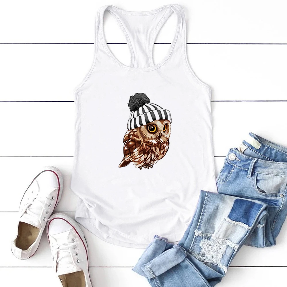 Майка женская с забавным принтом совы, модный топ без рукавов в стиле Харадзюку, топ с животным принтом, женская одежда, на лето