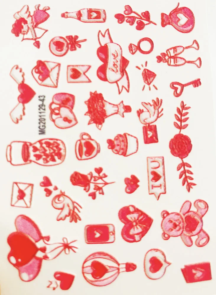 3D акриловые гравированные наклейки для ногтей, тисненые теплые солнцезащитные наклейки для ногтей, пустые Водные Наклейки, подарок на день Святого Валентина Z0385