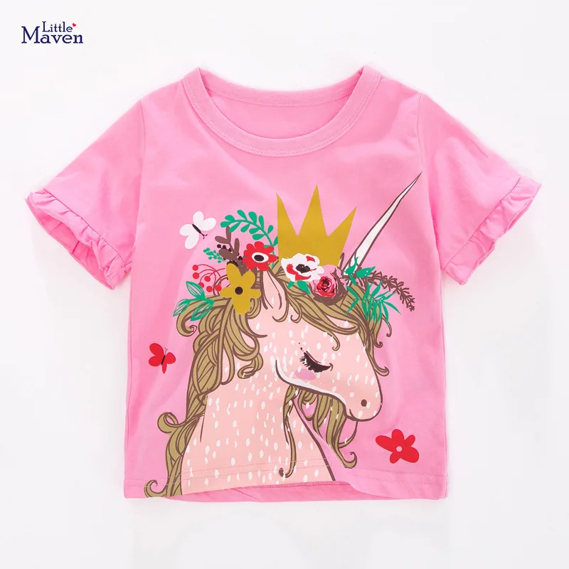 Футболка Little maven для маленьких девочек, детская хлопковая рубашка с принтом единорога, топ для маленьких девочек на лето