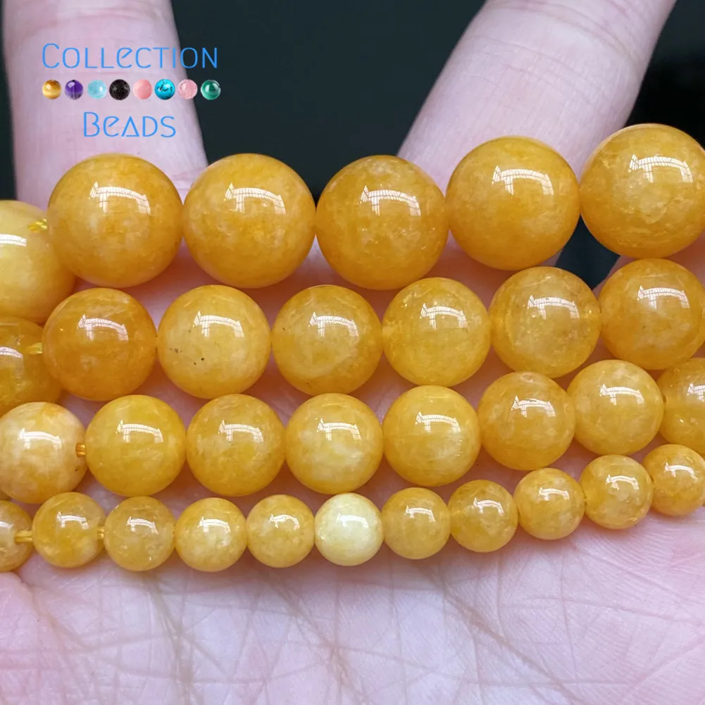 Натуральный желтый нефрит камень свободные шарики Круглые бусины для изготовления ювелирных изделий 6/8/12 мм бусины Diy Браслеты и браслеты аксессуары 15"