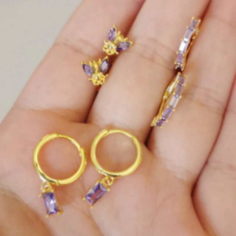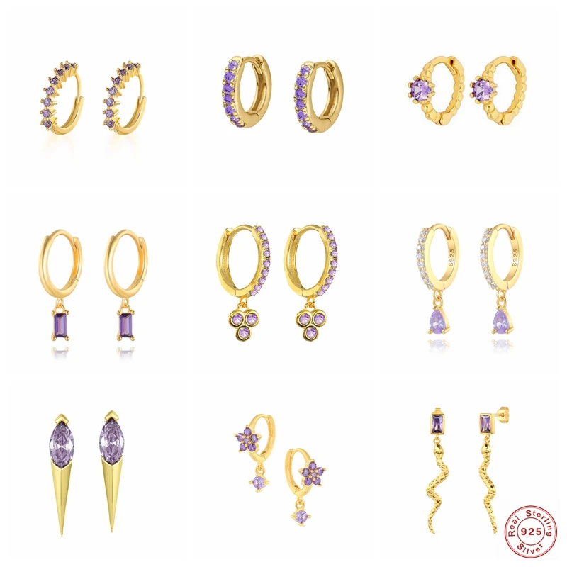 Женские серьги-гвоздики из серебра 925 пробы, корейские романтичные серьги с фиолетовым Цирконом для женщин, изящные украшения на День святого Валентина