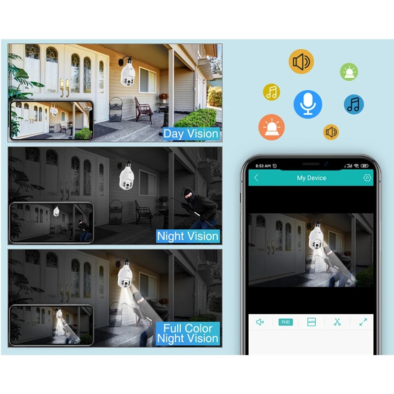Wi-Fi камера поставляется с микрофоном и спикером. Вы можете говорить с вашими детьми, домашними животными или посетителями удаленно через смартфон, когда и где бы вы ни хотели, каждая ситуация вашей семьи находится под контролем.