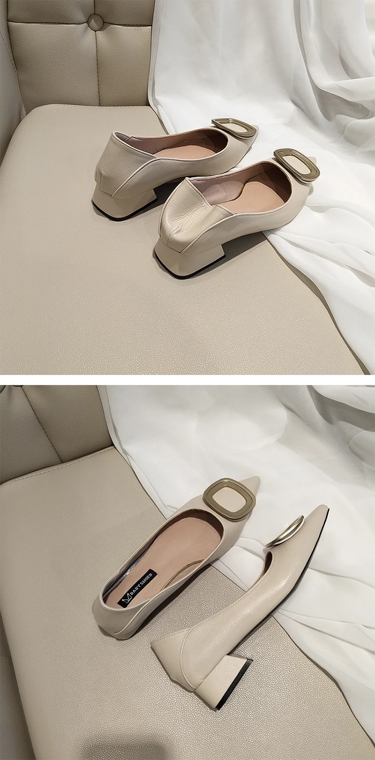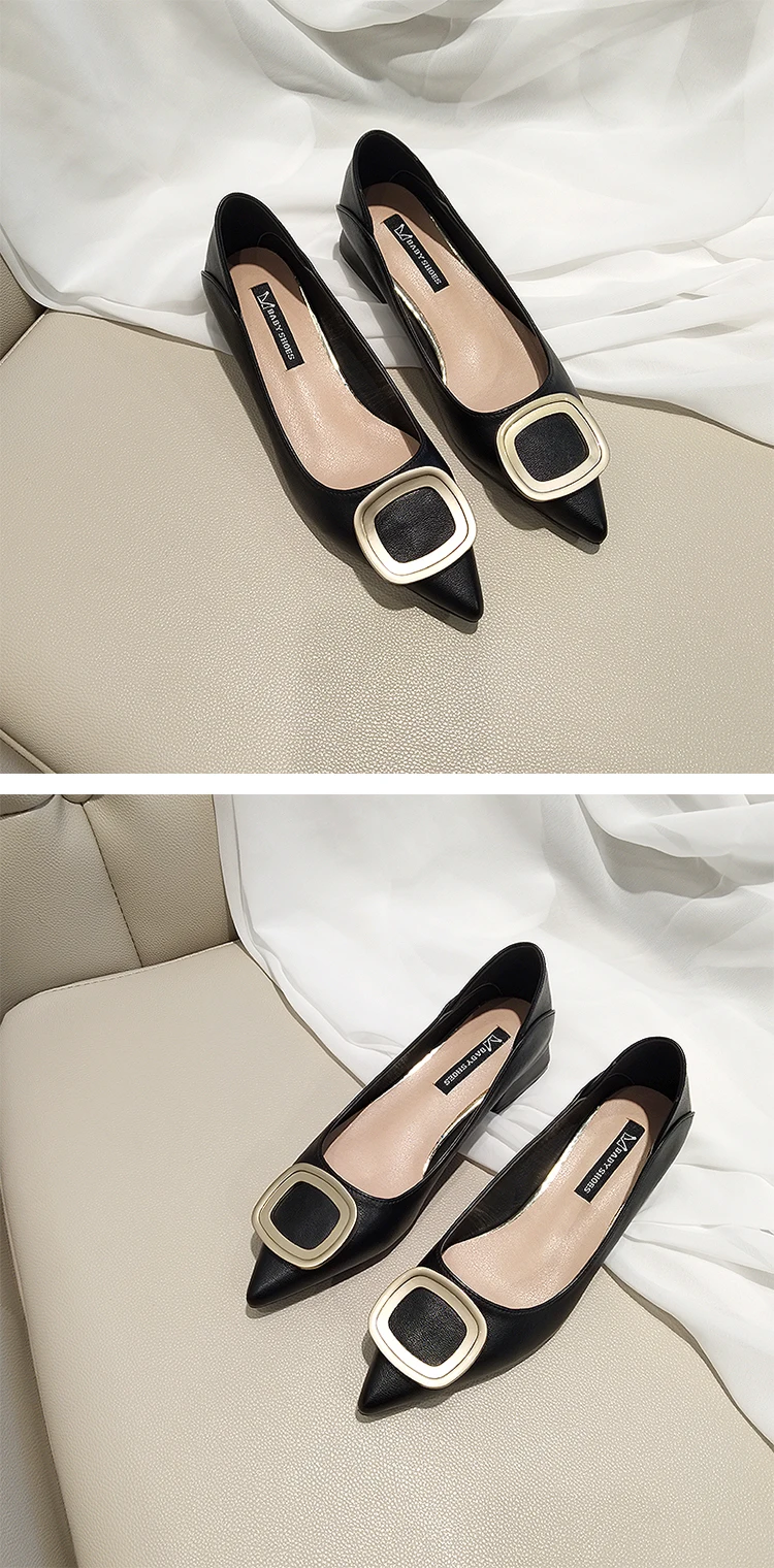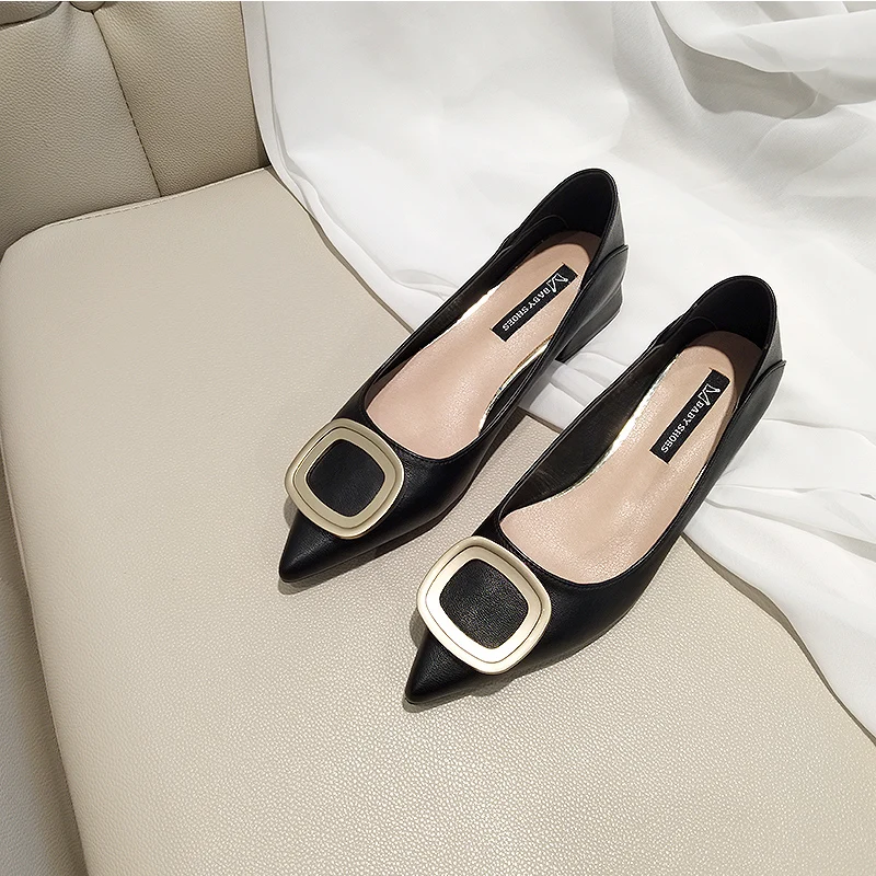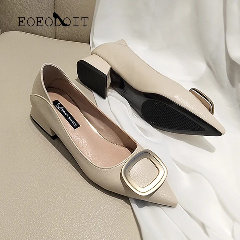 Женские туфли EOEODOIT, на низком каблуке, с квадратной пряжкой, с острым носком, кожаные модельные туфли, весна 2021