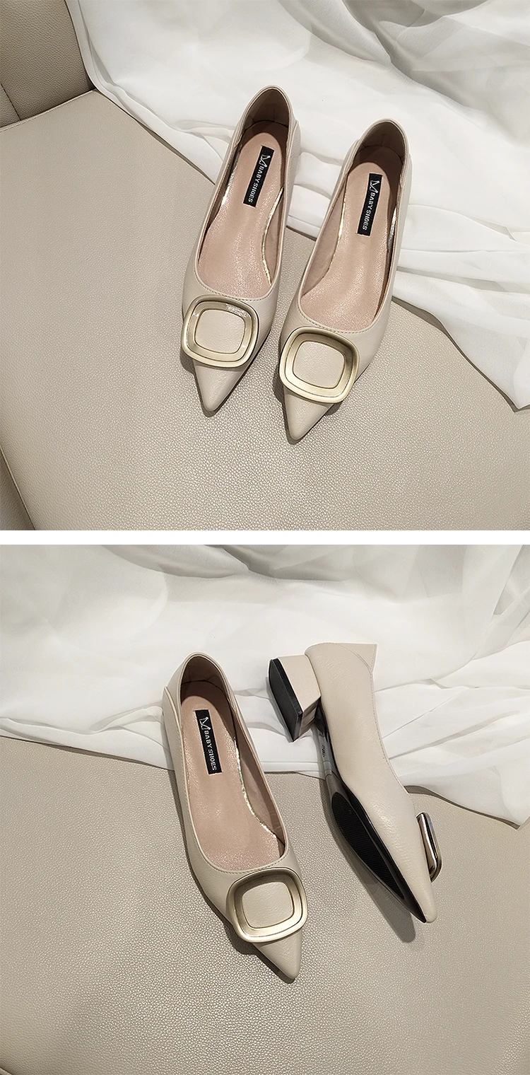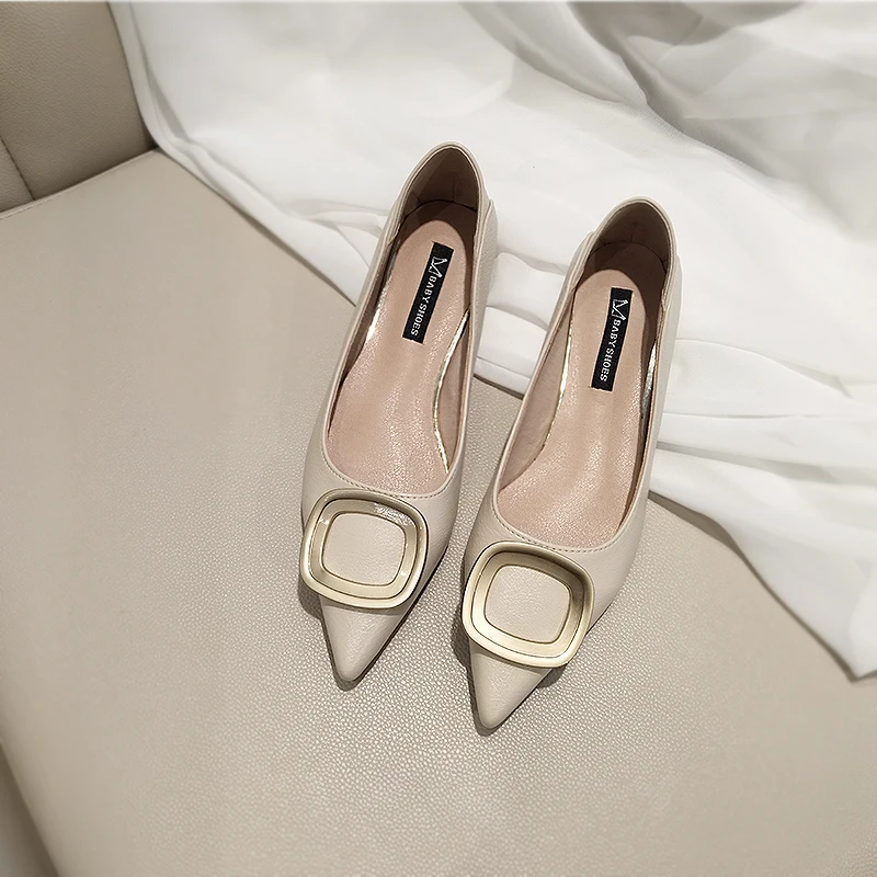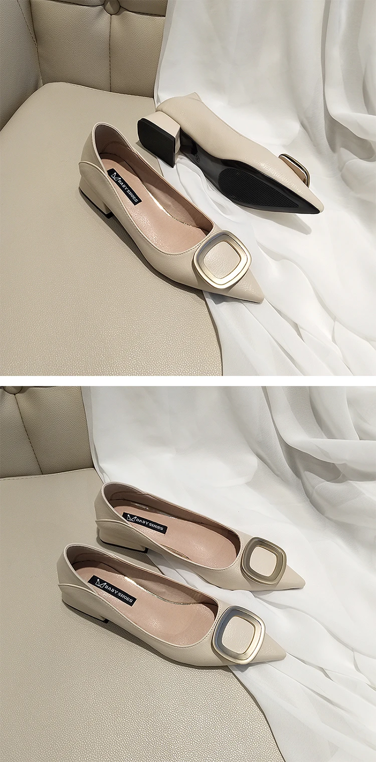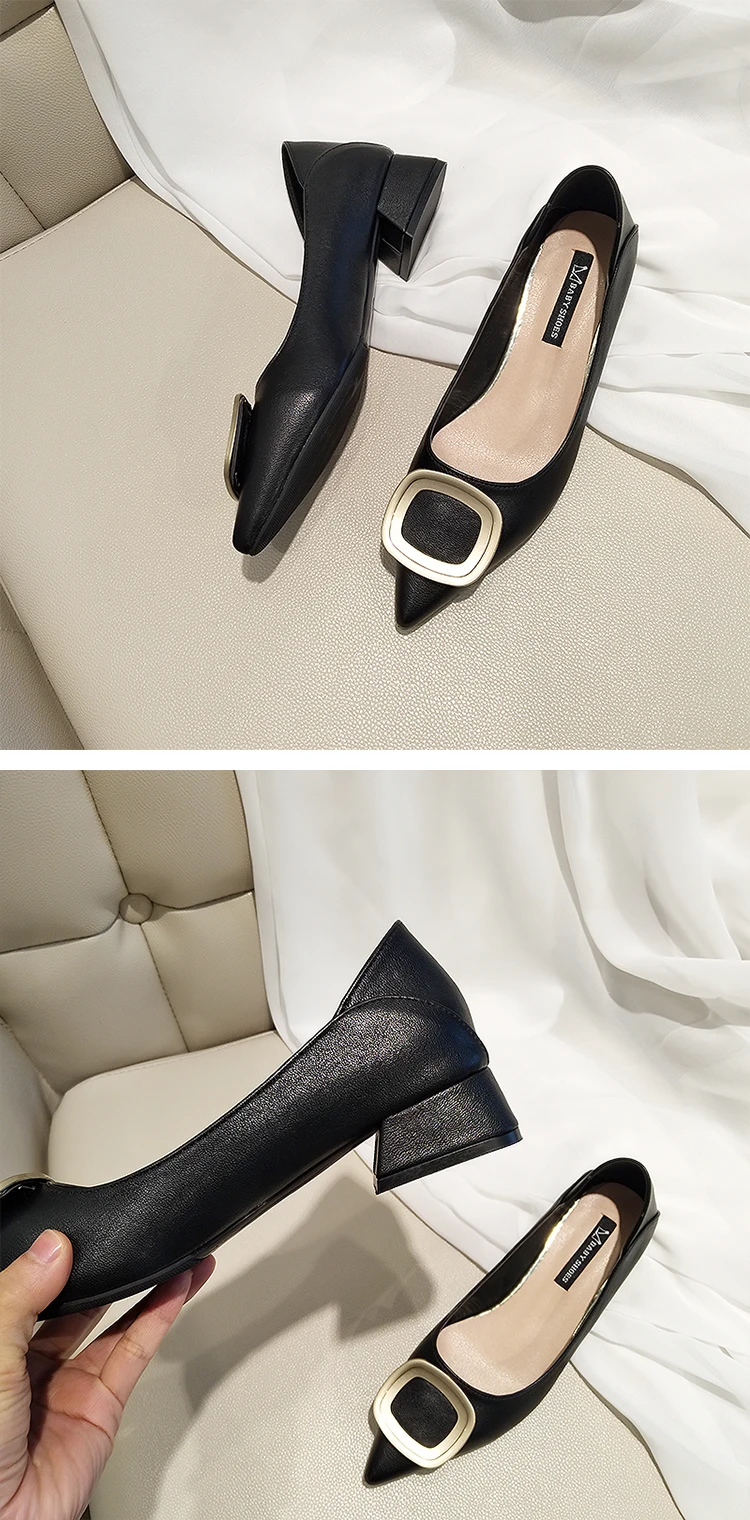 Женские туфли EOEODOIT, на низком каблуке, с квадратной пряжкой, с острым носком, кожаные модельные туфли, весна 2021