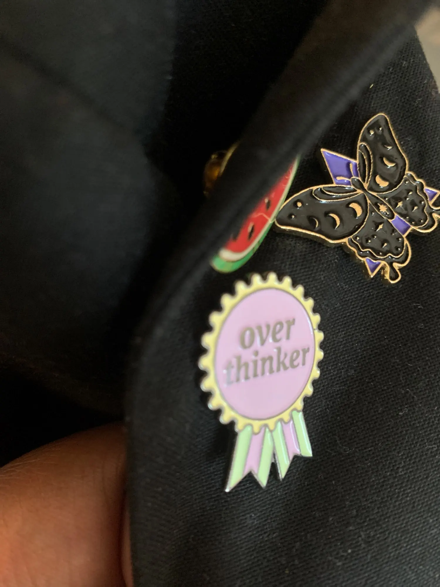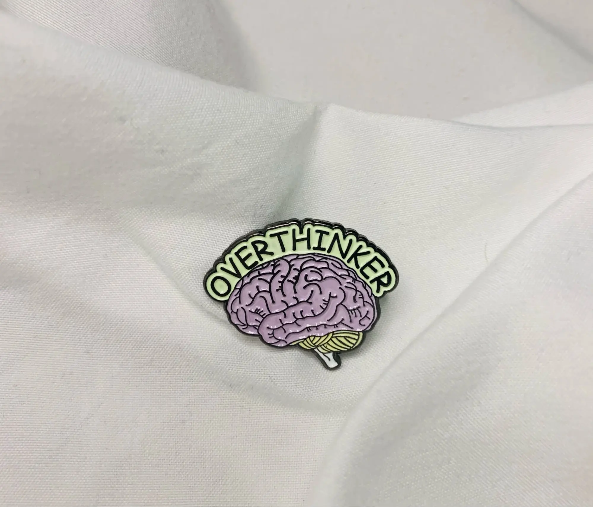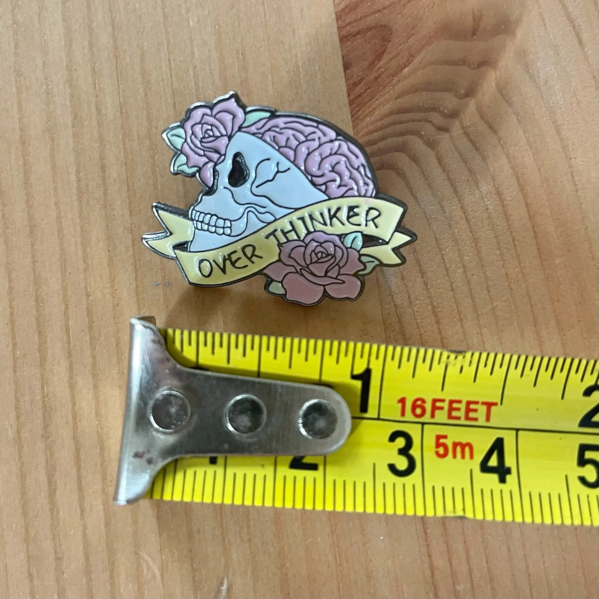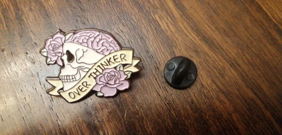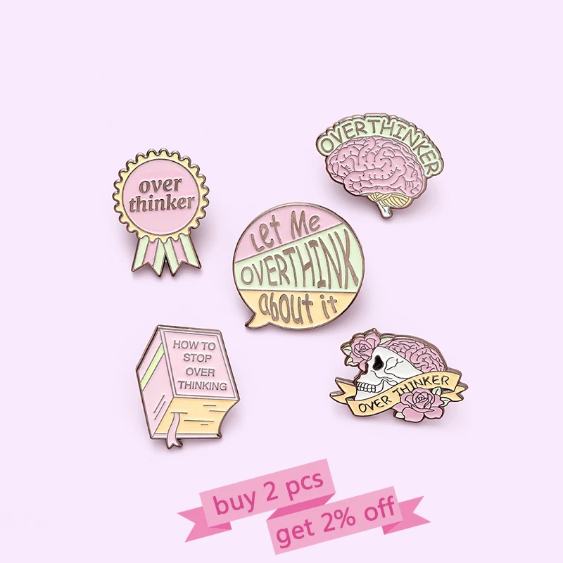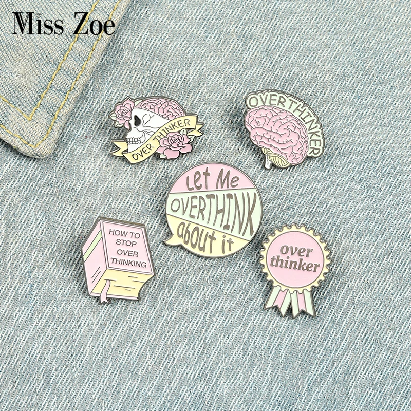 Эмалированный значок Overthinker, награда за перемышление, Череп, книга, мешочек для брошек, Нагрудный значок, мультяшный значок, ювелирное изделие, подарок для друзей