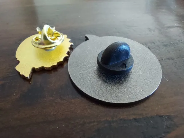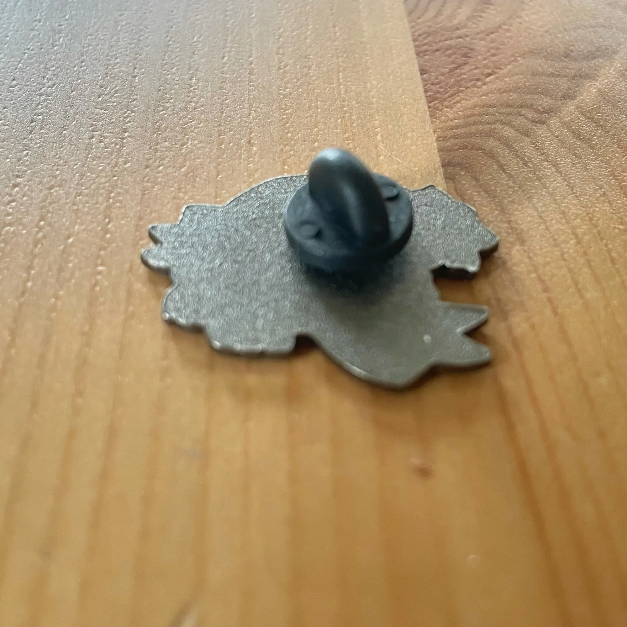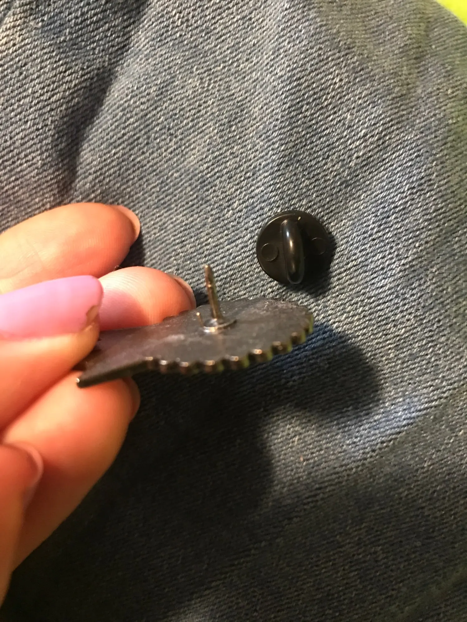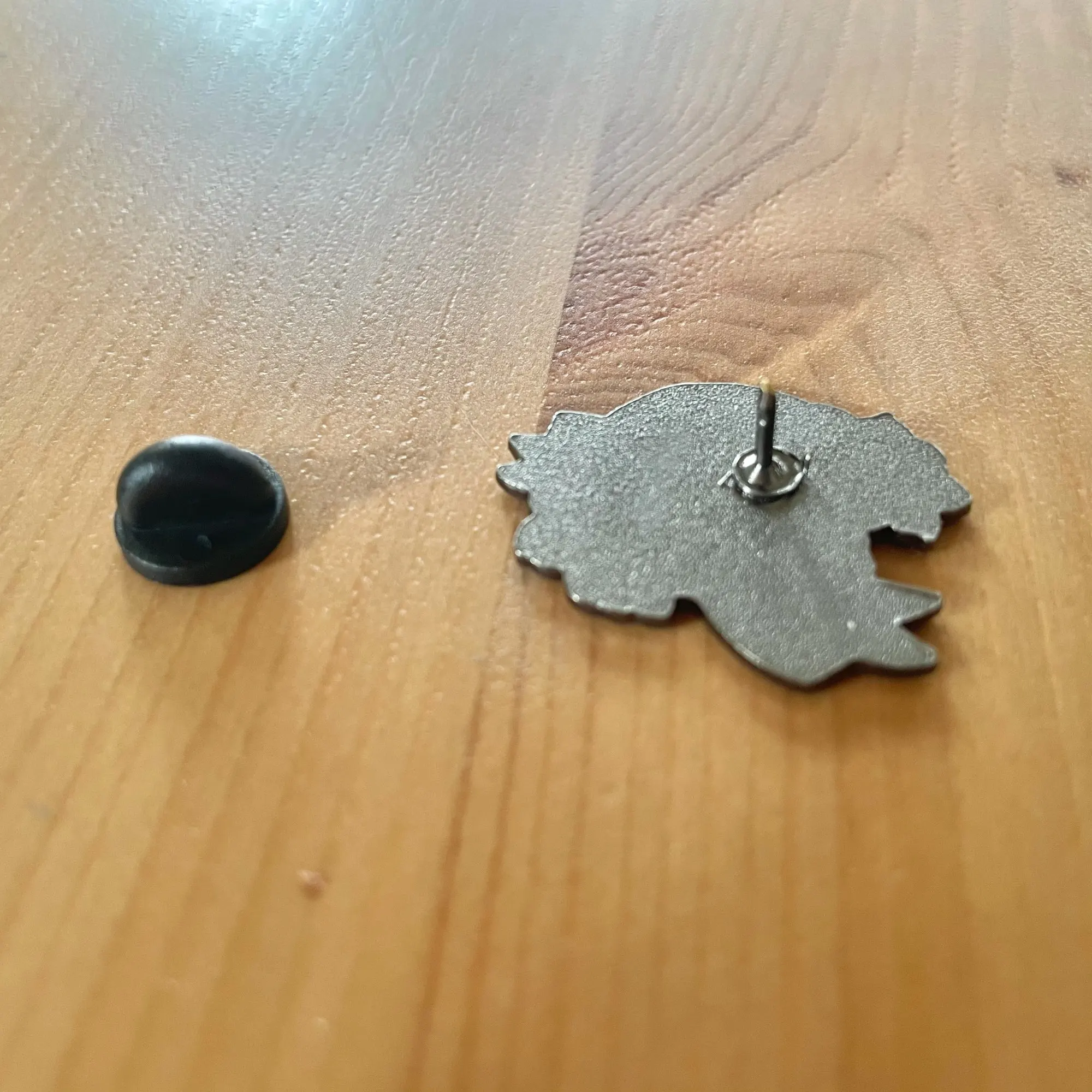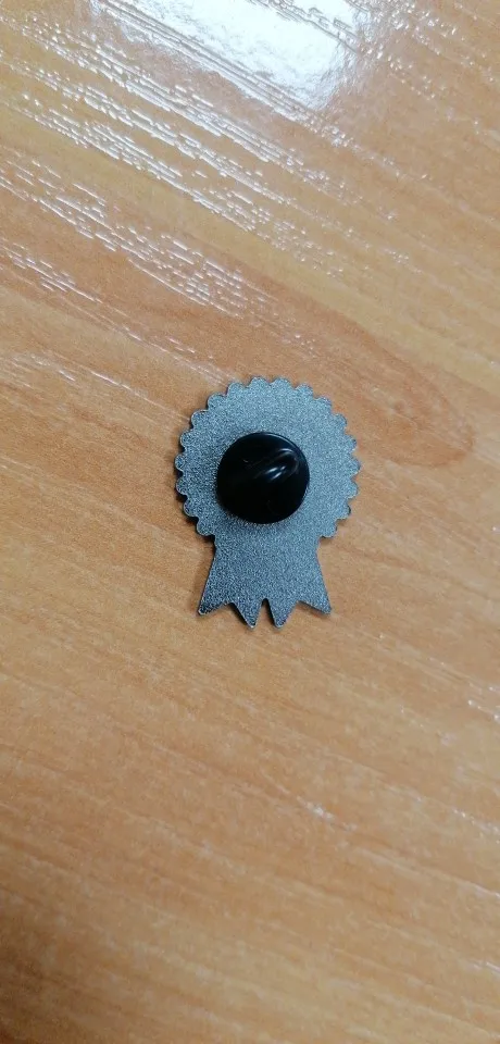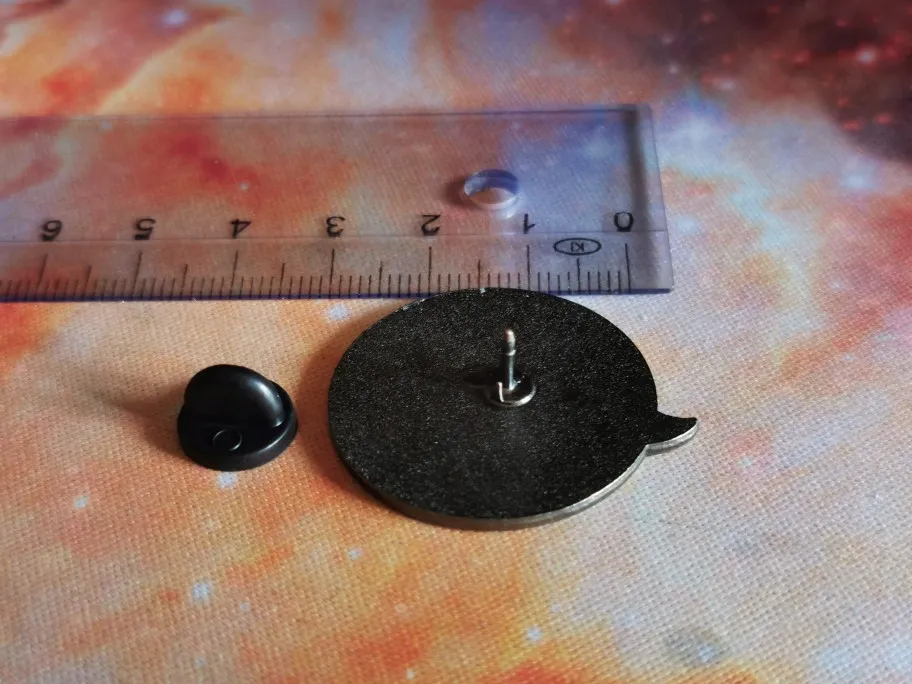 Маленький. Застегивается не на булавке, а как серьги-гвоздики. Доставка 2 недели ±