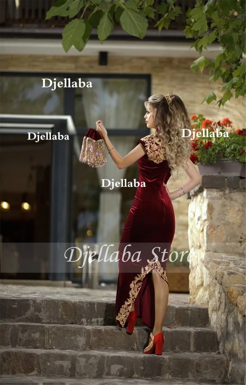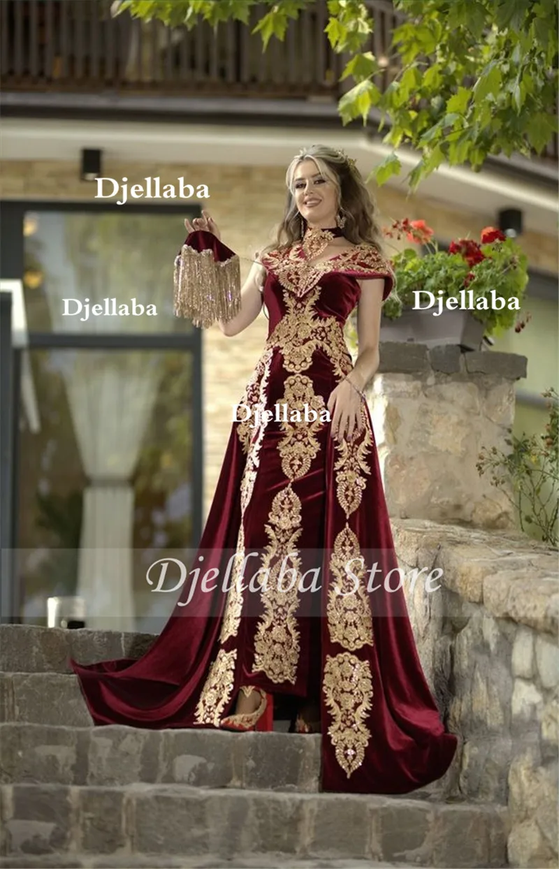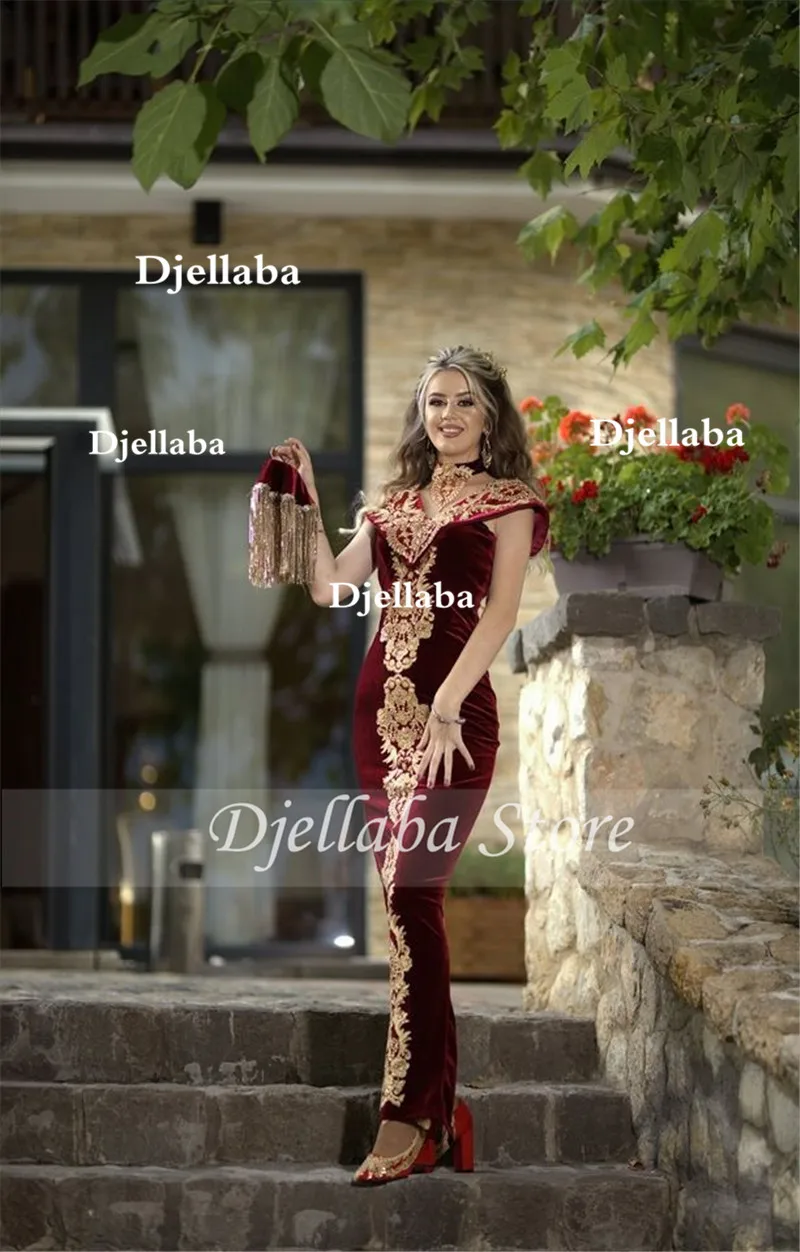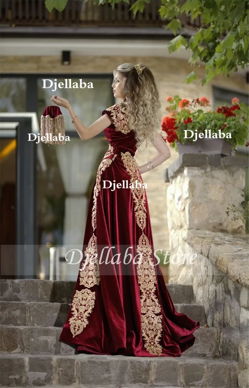 Вечернее платье бордового цвета, традиционное кафтан в Алжире, свадебное платье с кружевной аппликацией, женское бархатное платье для выпускного вечера