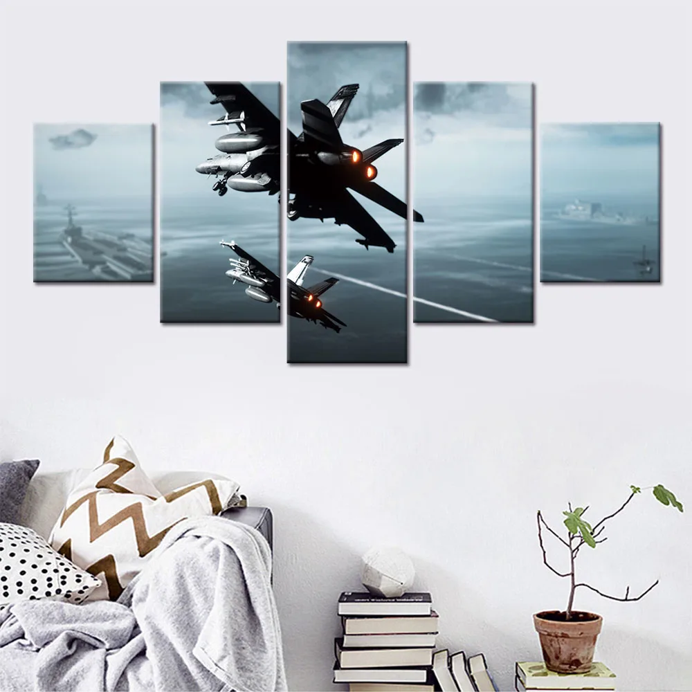 Модульная HD 5 шт. самолет вертолет военный бой плакат на холсте Печать, Картина Настенная живопись Домашний декор