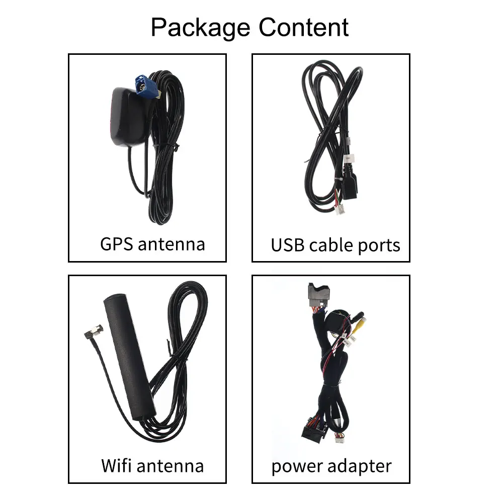 Наш продукт поставляется с GPS антенной, gps-картой для вашей страны, usb-адаптером, аудио и видео входным кабелем, кабелем питания... и т. д., все наборы для установки будут в посылка.