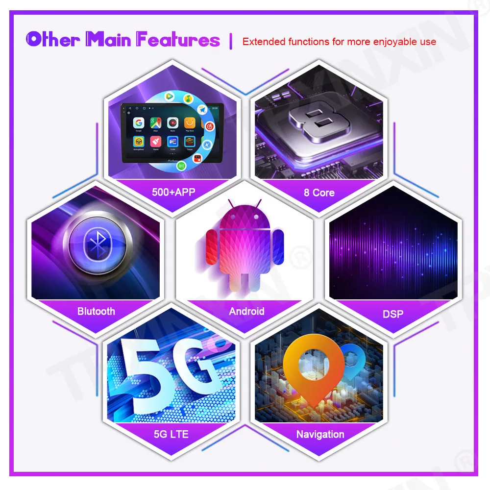 1. Поддержка функции DVR: Поддержка переднего видеорегистратора, Запись вождения, делает путешествие более безопасным.2. Поддержка камеры заднего вида: автоматическая работа при реверсе, может отображать обратную дорожку.3. Поддержка внешнего приемника DAB (управляется Toush screen)4. OBD поддерживает OBD II: Автомобильные диагностические инструменты, вы можете узнать свой статус автомобиля в любое время и в любом месте. Можно купить ключ OBD у нас5, поддержка цифрового ТВ: может поддерживать DVB-T2 / ISDB-T, с нашим DVB-T2 / ISDB-T коробкой и разъемом, может работать на нашем автомобильном dvd-экране,6. Поддержка carplay: Поддержка Android AUTO и Carplay7. Поддержка контроля давления в шинах: обзор давления в шинах в реальном времени, защита безопасности дорожного движения.8, Поддержка модуля 4G: подключение к Интернету в любое время, в любом месте, поделиться пейзажем с друзьями.
