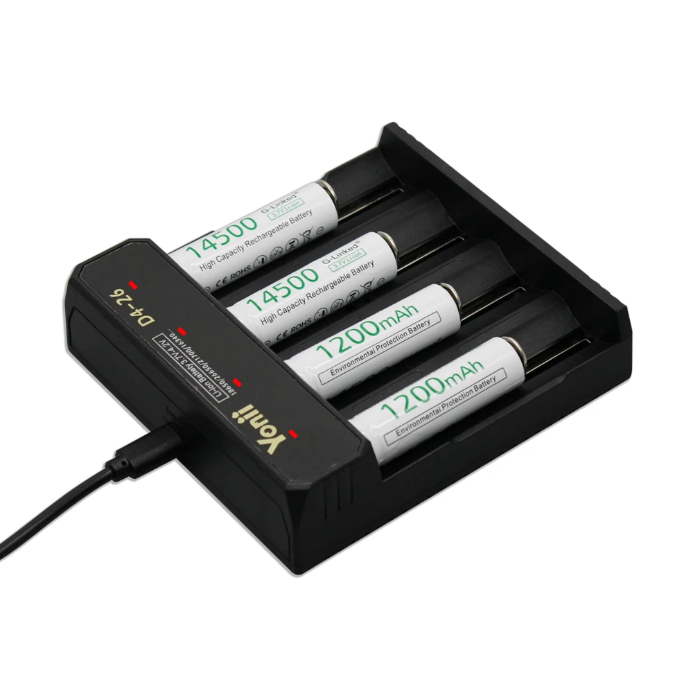Совместимость с IMR/li-ion аккумулятор и зарядное устройство, в том числе 26700,26650,26500,25500,22700,21700,20700,22650,22500,18700,18650,18500,18490,18350,17650,16650,16350(RCR123),14650,14500Вход: 5 В 2 АВыход: 4,2 V 4X0.6AПримечание 1: светодиодный светильник будет красным во время зарядки.Будет зеленым при полной зарядке.Примечание 2: можно заряжать 1 шт., 2 шт., 3 шт., 4 шт. разных аккумуляторов одновременно.Примечание: 3: вход с usb-кабелем.