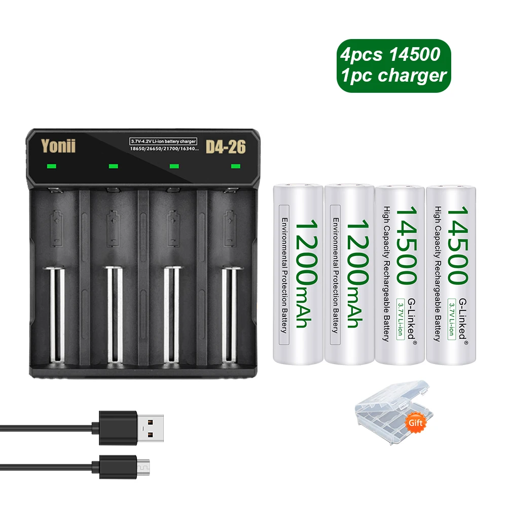 2-16 шт., литий-ионные аккумуляторные батарейки 14500, 1200 мАч, 3,7 в
