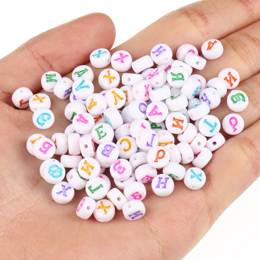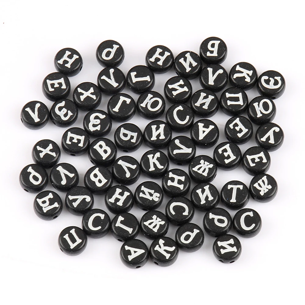 100 шт.лот смешанные белые русские буквы акриловые бусины круглый плоский Алфавит свободные разделительные бусины для браслетов ожерелий ювелирных изделий