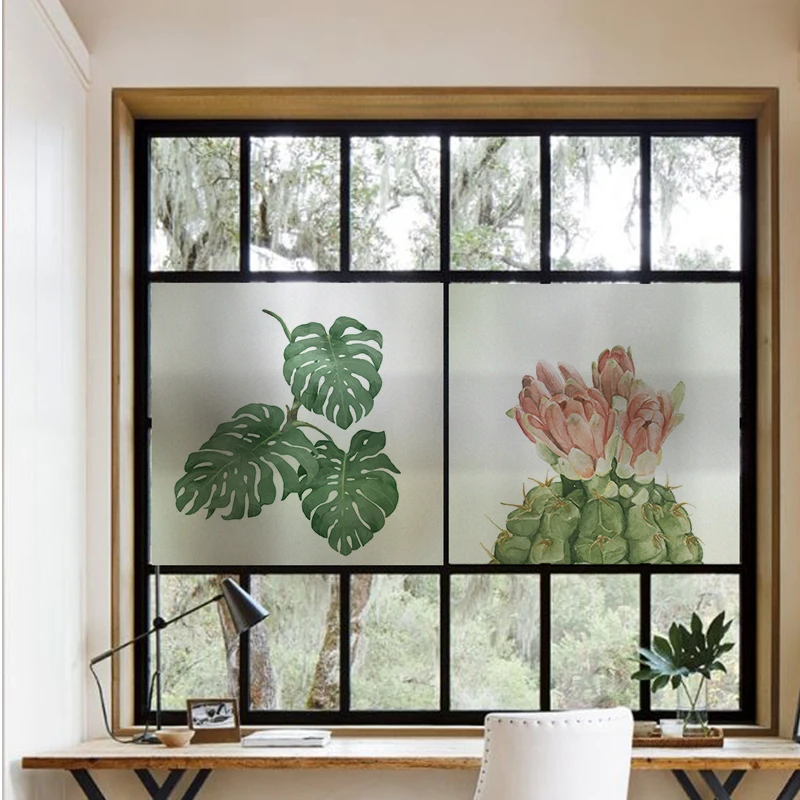 Наклейка на окна, Виниловая наклейка на стекло, не клеящаяся оконная наклейка, статическая липкая оконная декоративная наклейка, растения с кактусами