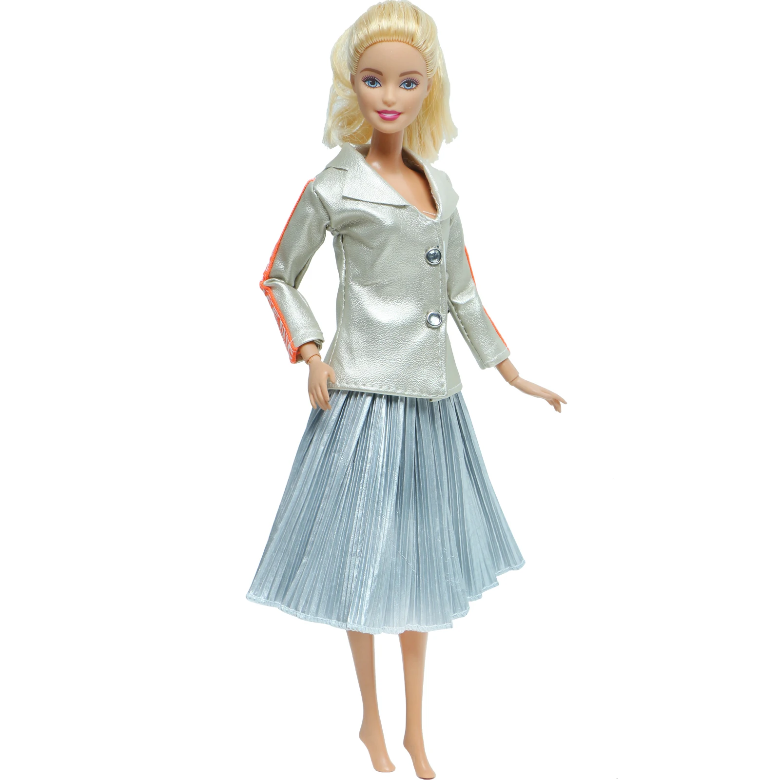 Современный серый кожаный пиджак, женская одежда, Одежда для куклы Барби, аксессуары для девочек, игрушка, 1 комплект