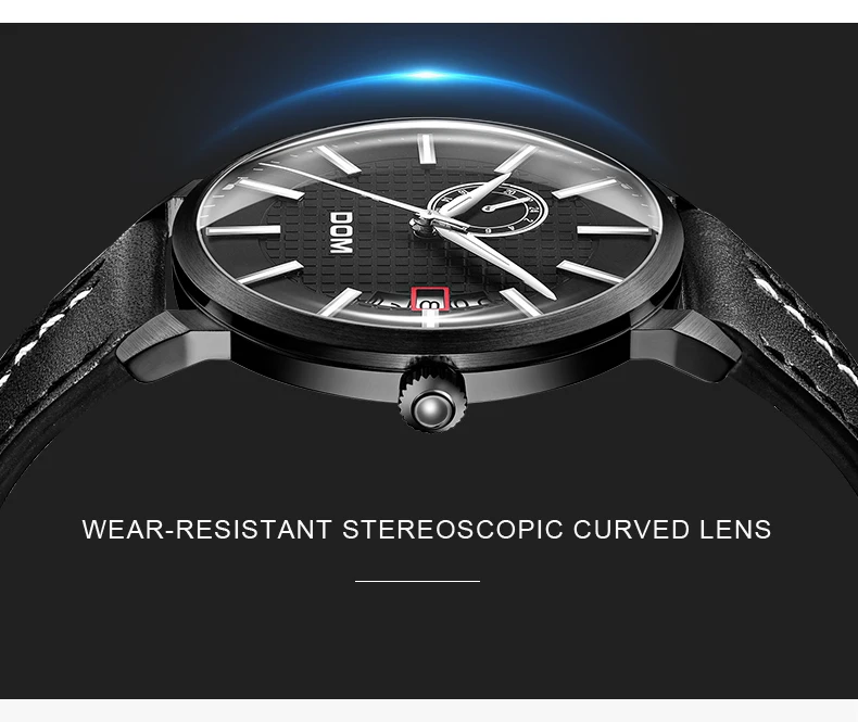 DOM мужские водонепроницаемые часы с кожаным ремешком тонкие кварце...