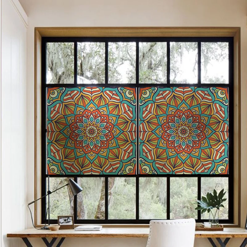 Стеклянные оконные пленки с мандалой GS034, домашний декор, стеклянная дверная наклейка с мандалой, домашний декор