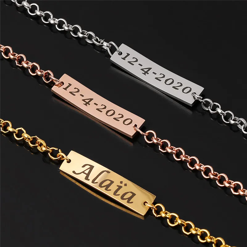 Именные браслеты на заказ, персонализированная цепочка из нержавеющ...