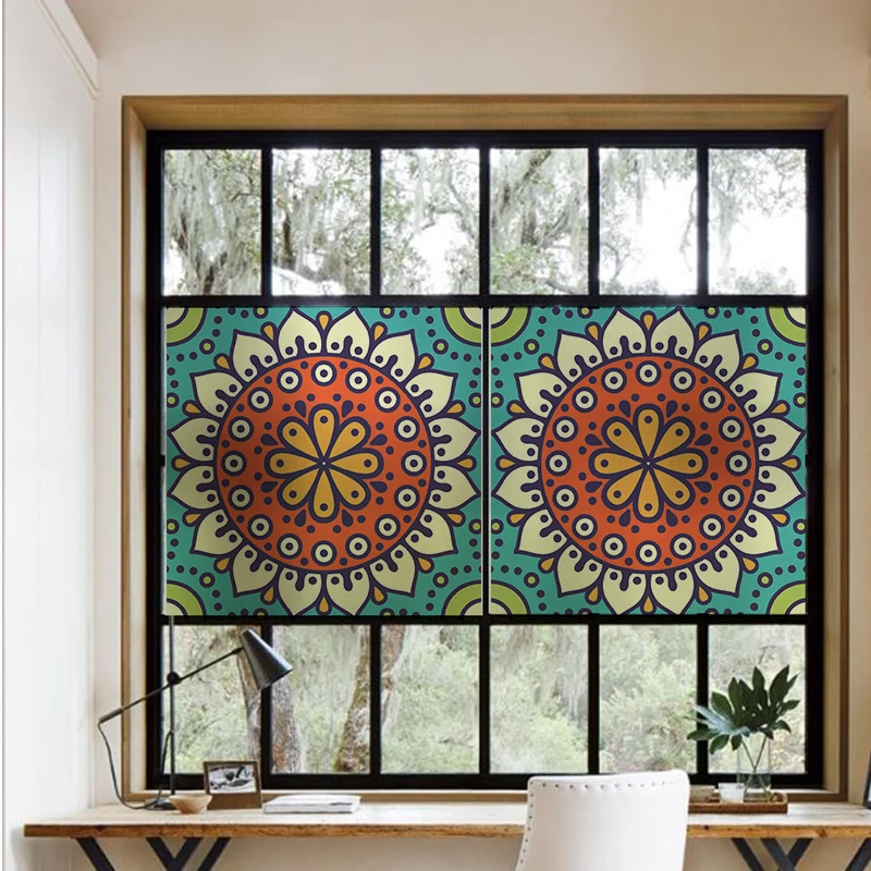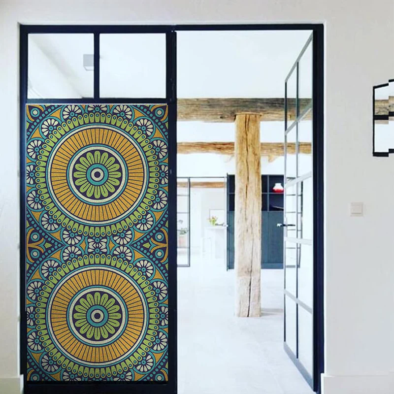 Стеклянная пленка на окна, пленки для домашнего декора, наклейка на стеклянную дверь, домашний декор, цифровая печать Мандала GS036