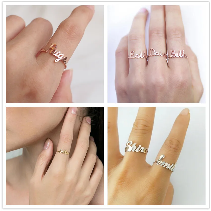 Пластиковый пакет штабелируемые персонализированные именные кольца Свадебные ювелирные изделия из нержавеющей стали индивидуальная табличка с именем на палец подарки подружки невесты