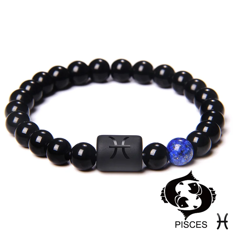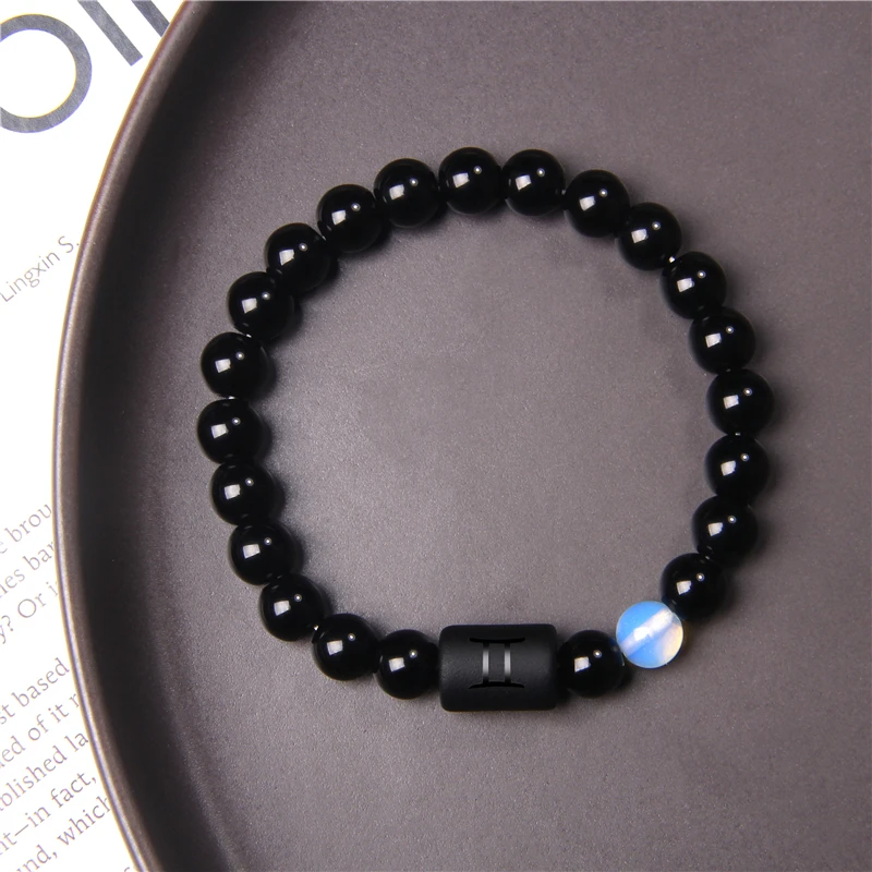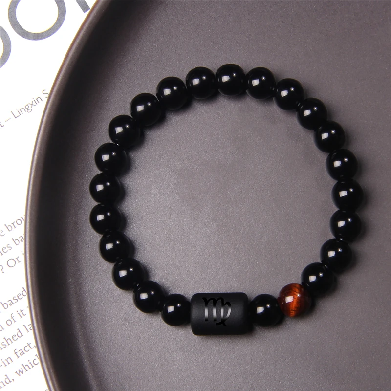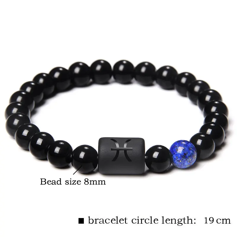 Натуральный Черный Оникс Камень бисер 12 созвездий рыбы Рак Лев чакры браслет для женщин; Обувь для пары; Мужская браслет подарки на день рождения