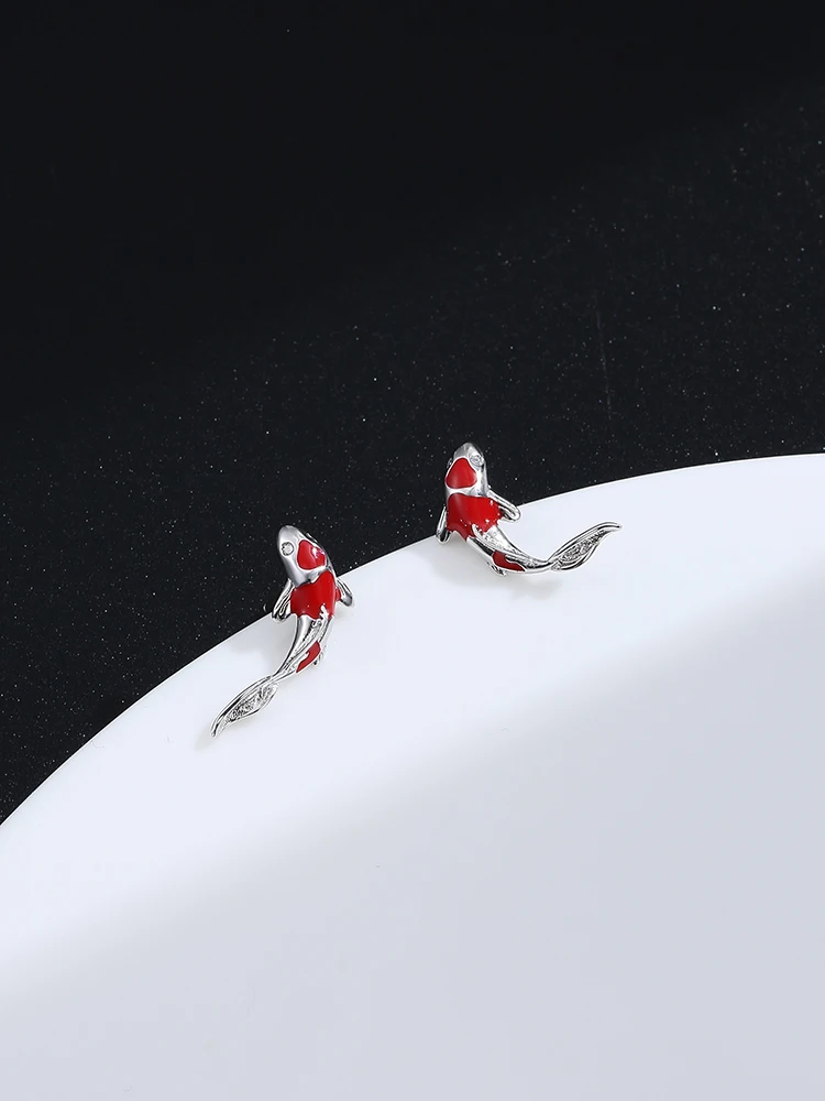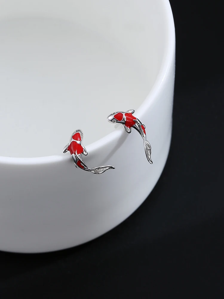 GOMAYA 925 стерлингового серебра серьги-гвоздики для женщин в китайском стиле Стиль красный серьги рыбки 5A с прозрачным кубическим цирконием, фестиваль, хорошее ювелирное изделие