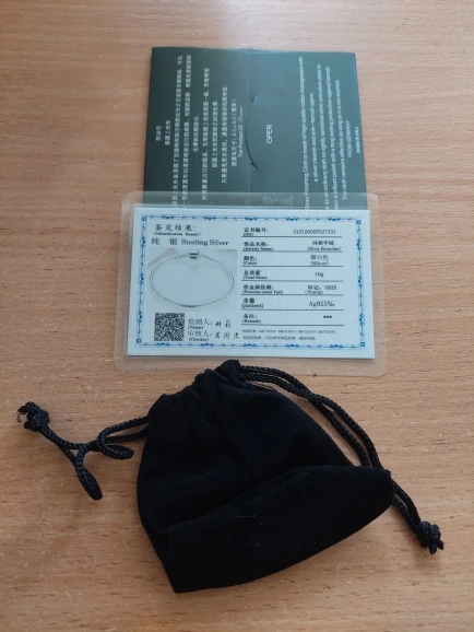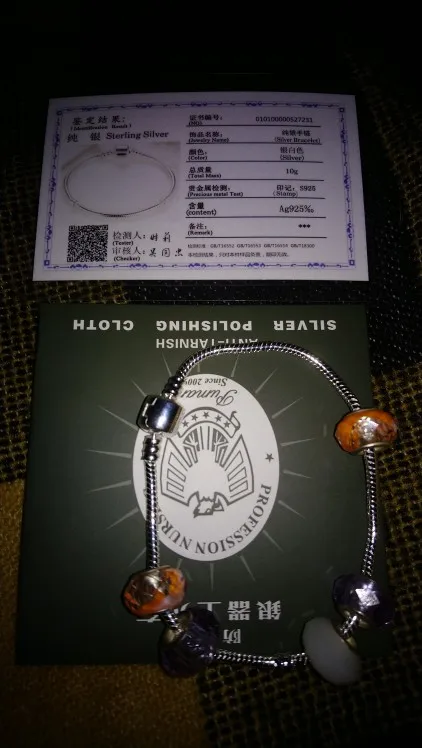 Поставляется с сертификатом серебра. Продавец отправляет несколько сумок для хранения браслетов, которые великолепны. Очень красиво и выглядит хорошо.