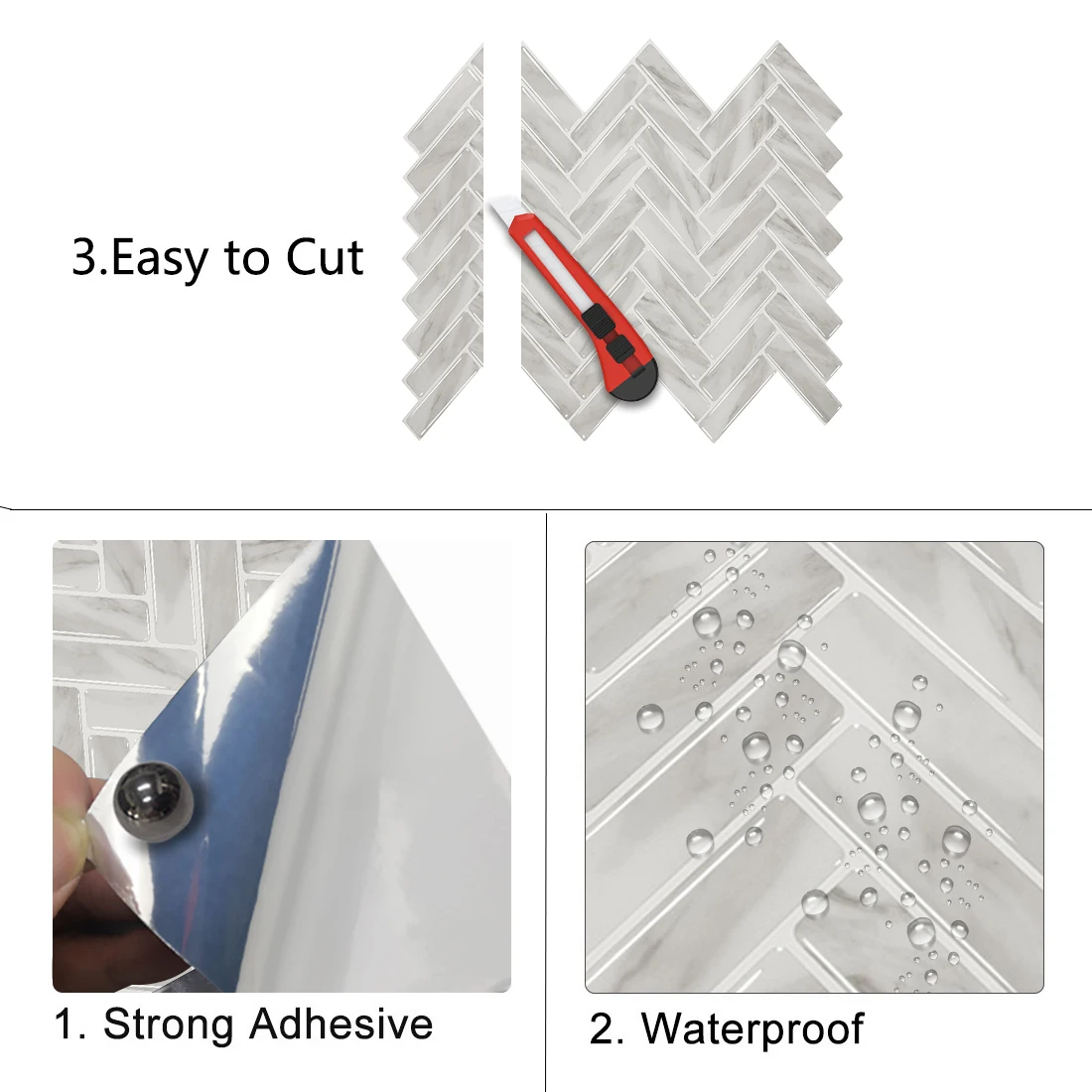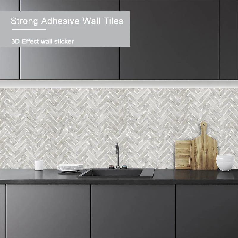 3D Водонепроницаемая настенная плитка в елочку для кухни сделай сам с мраморным узором
