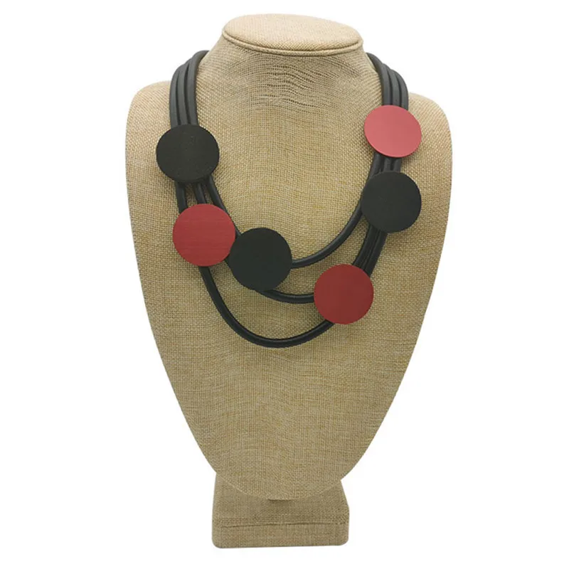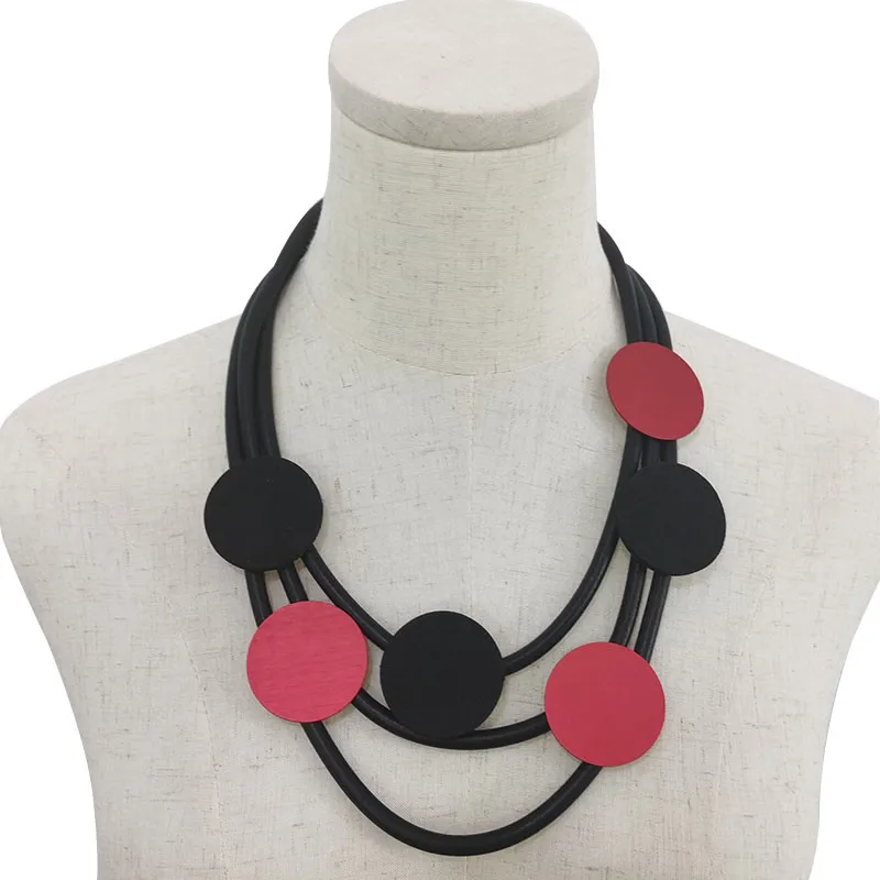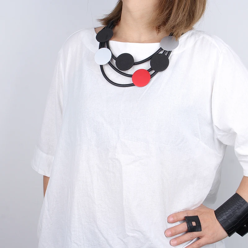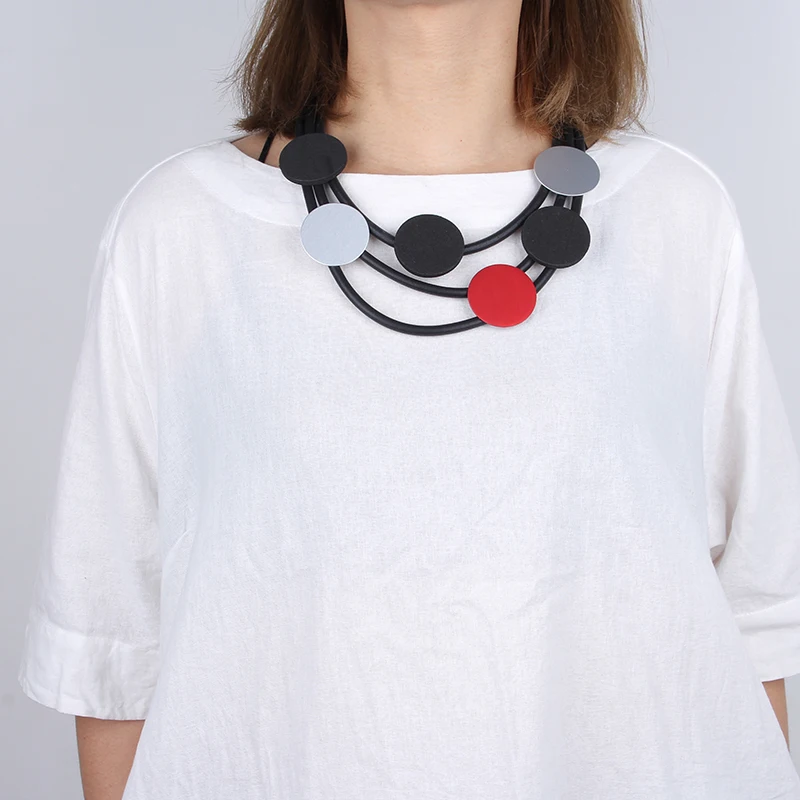 Женский короткий чокер ручной работы, красный круглый металлический чокер в стиле панк, черная резиновая веревка, ожерелье в богемном стиле, готическая одежда