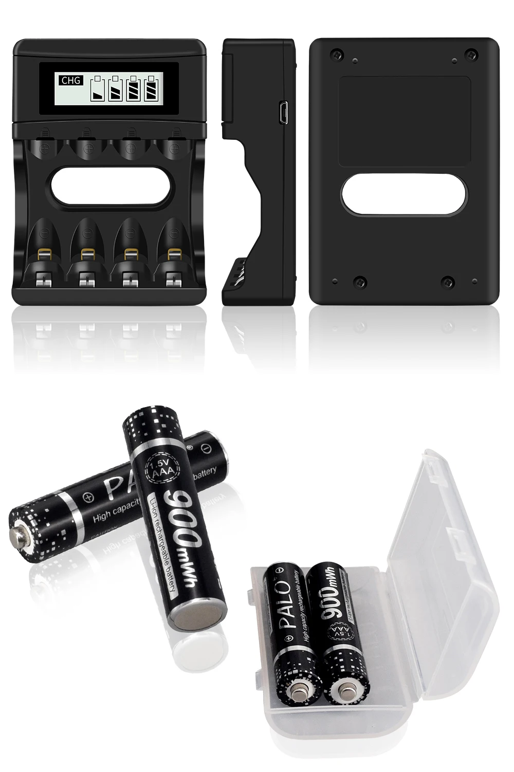 Зарядное устройство PALO с 4 слотами для литий-ионных батарей 1,5 в...