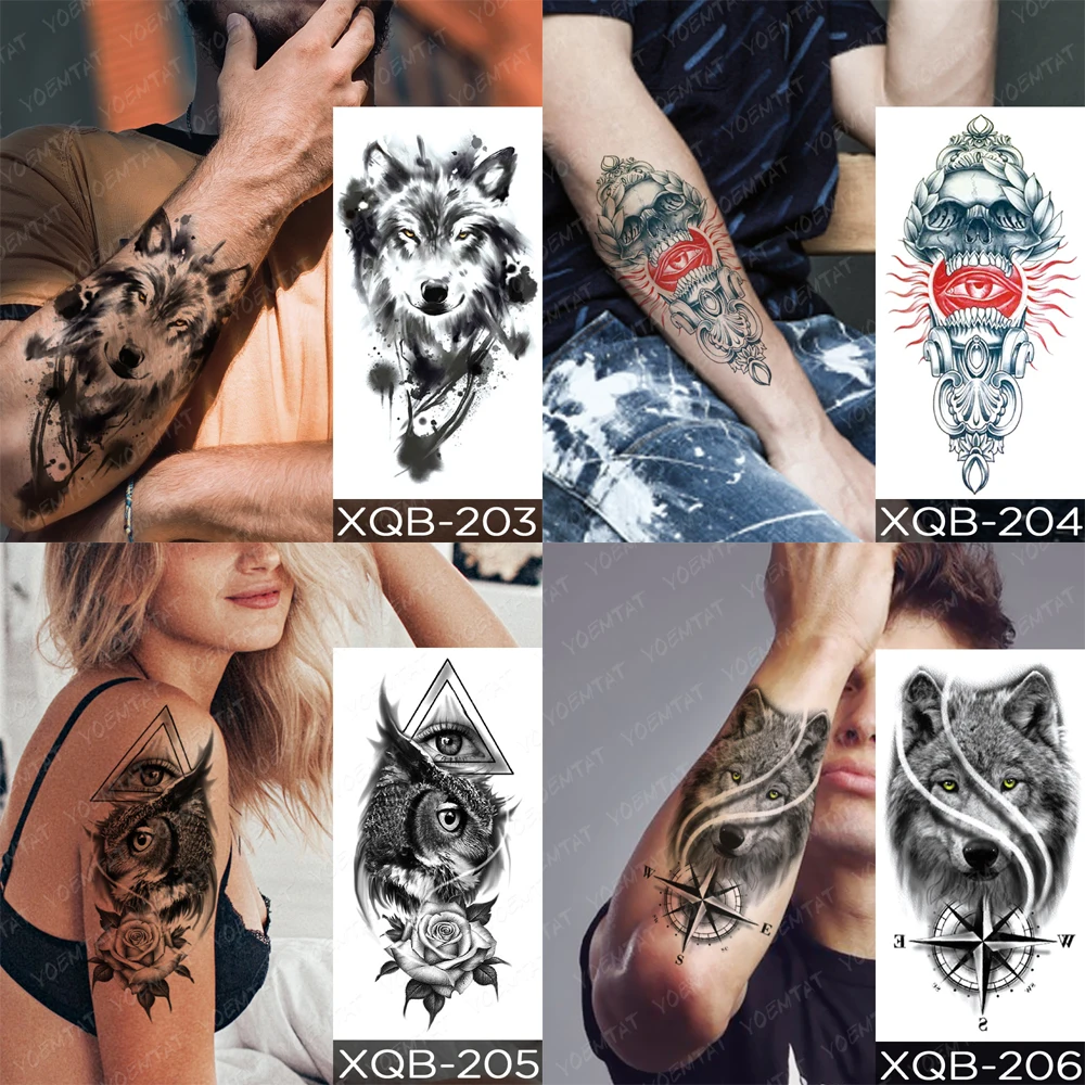 Водонепроницаемый временная татуировка Стикеры череп ворона Дракон Волк меч флэш-тату Тигр лес для боди-арта рука Поддельные рукава татуировки Для мужчин