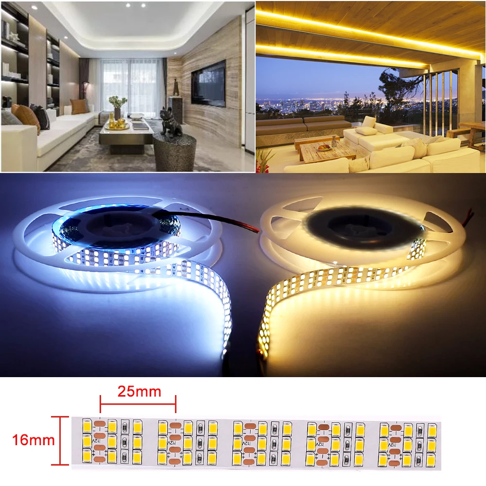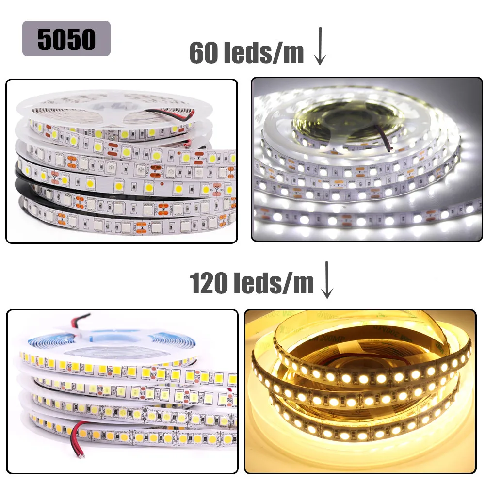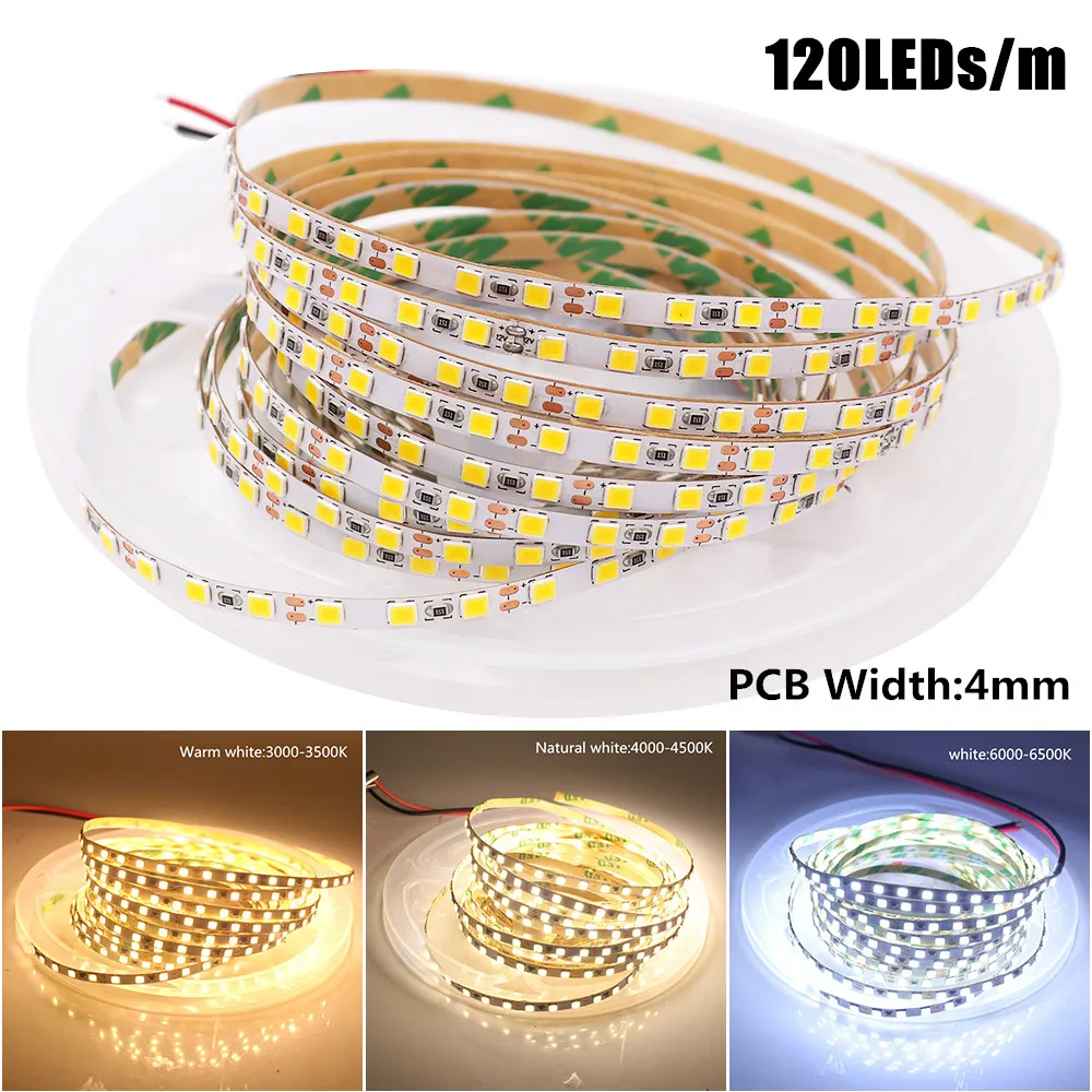 Светодиодная лента, гибкая светильник та из натурального белого и теплого белого света, 12 В постоянного тока, 5 м, 2835, 5050, 5054, 120 светодиодов на метр