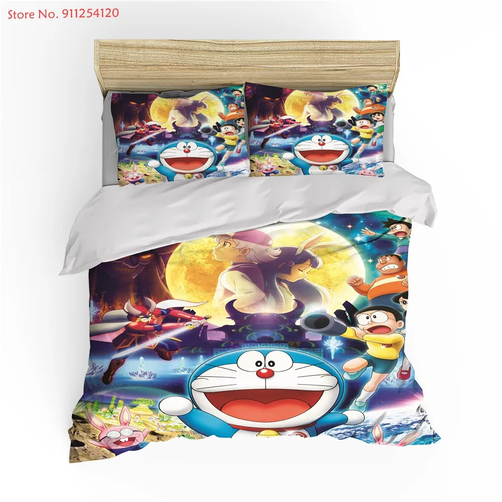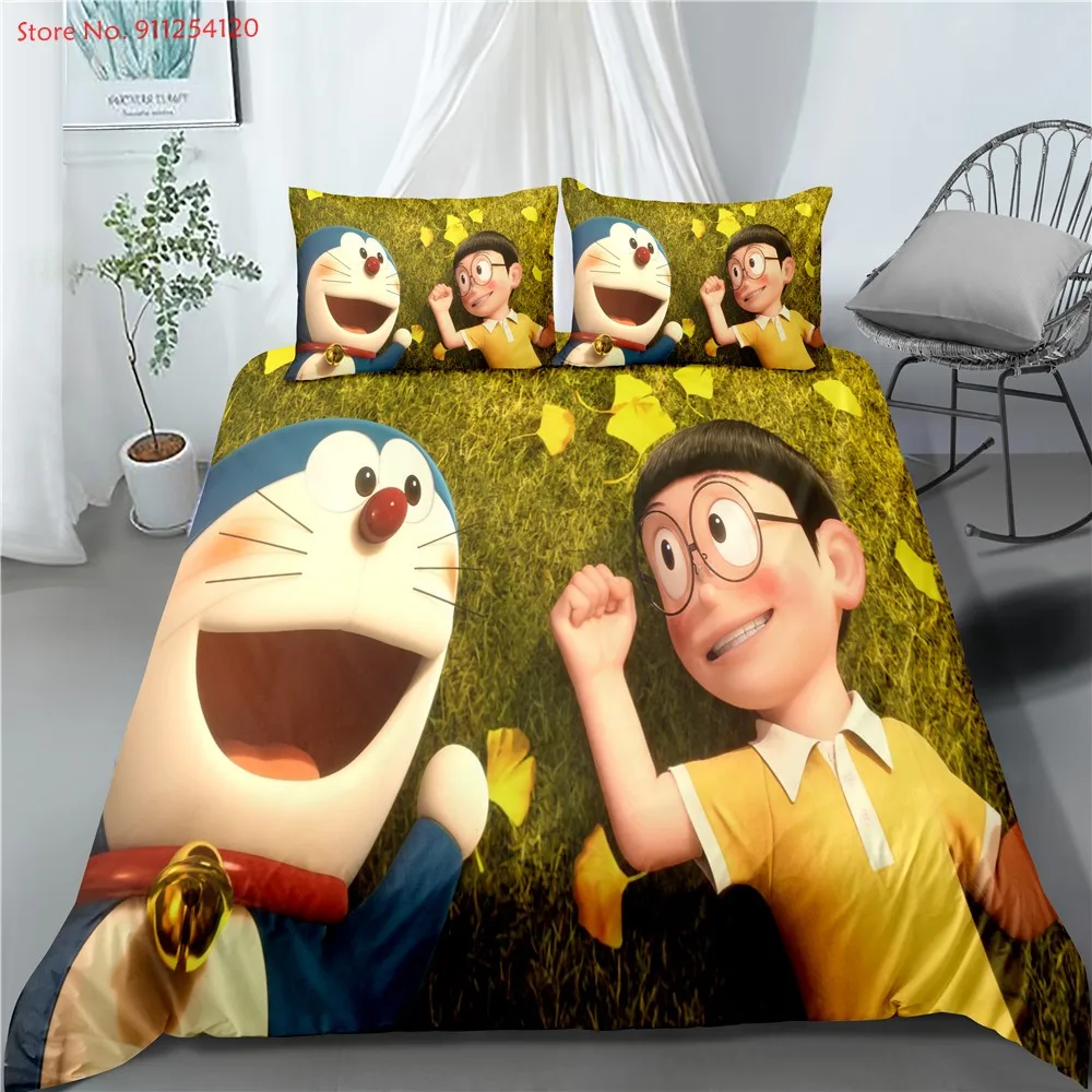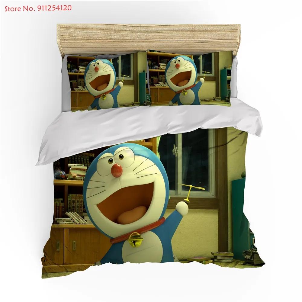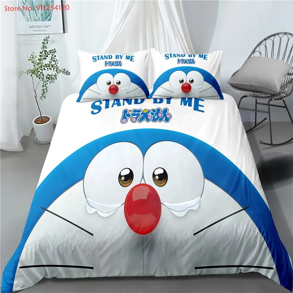 Комплект постельного белья с объемным рисунком дораэмона, пододеяльник, односпальная двуспальная королева, Королевский размер, комплект постельного белья, 2/3 предмета, Детские комплекты постельного белья