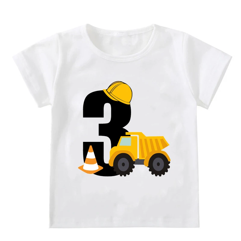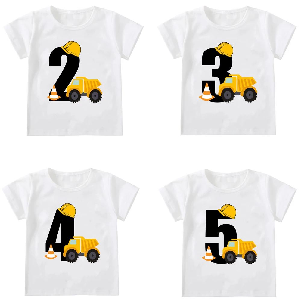 Детские футболки для мальчиков, детские топы с коротким рукавом и экскаватором, детская модная футболка, рубашки для строительства и дня рождения для мальчиков