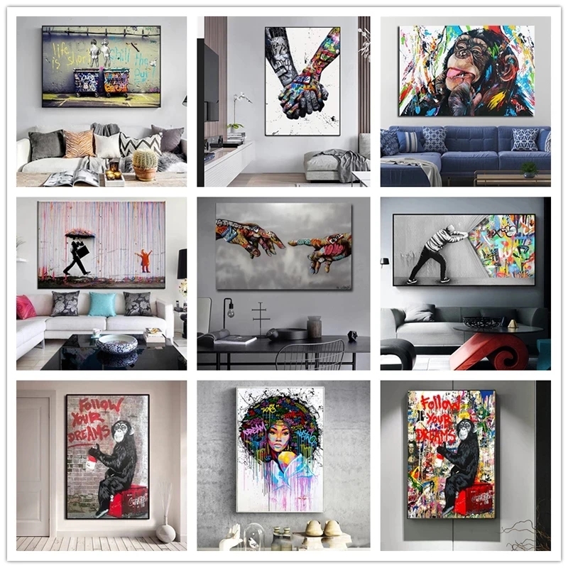Бэнкси Улица граффити художественный коллаж обезьяны холст картины плакаты и принты Куадрос Настенная картина для гостиной домашний декор
