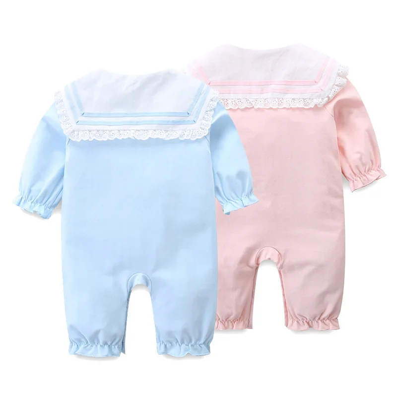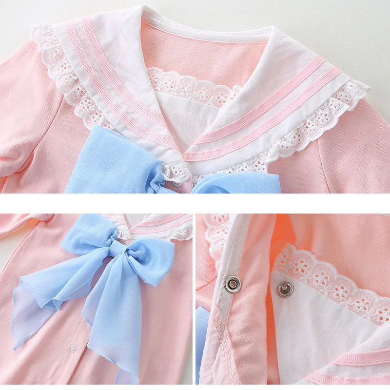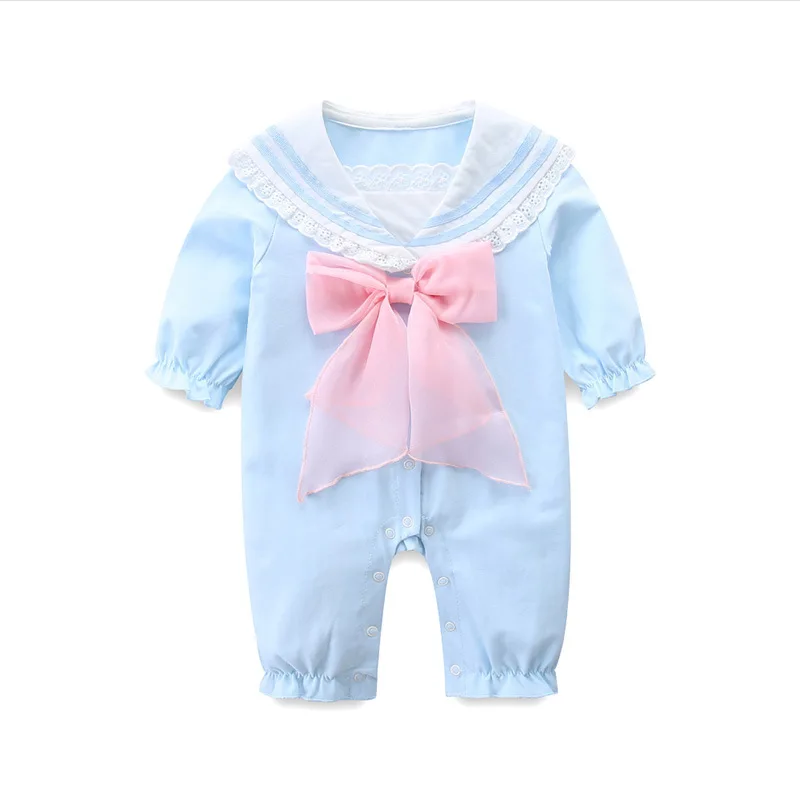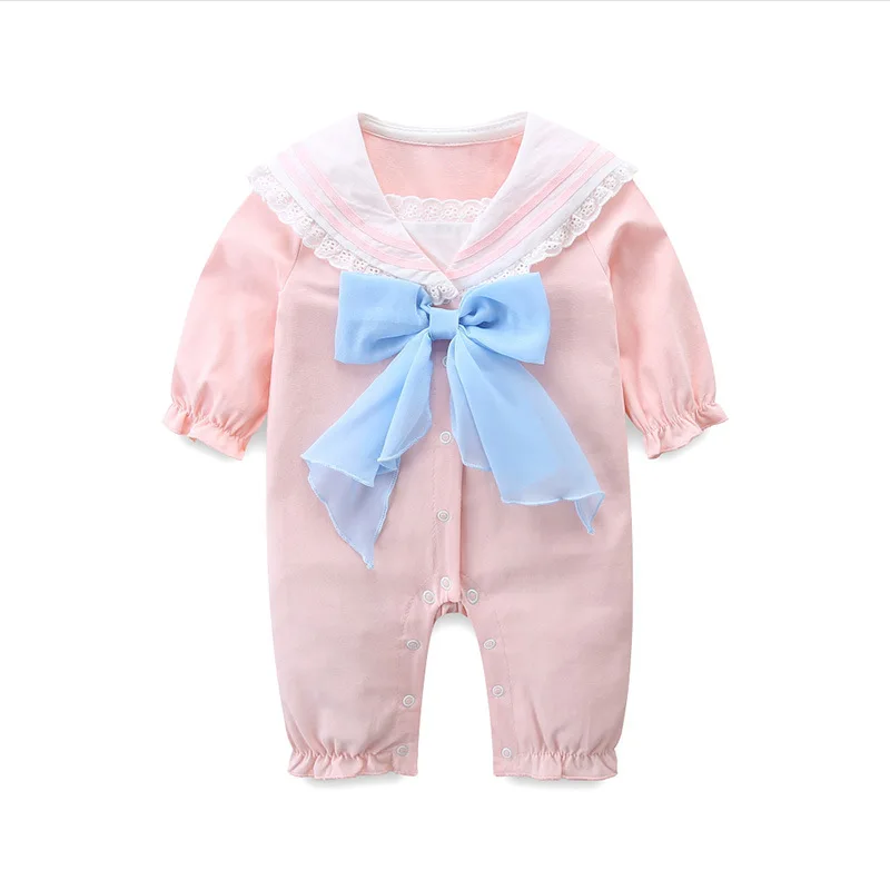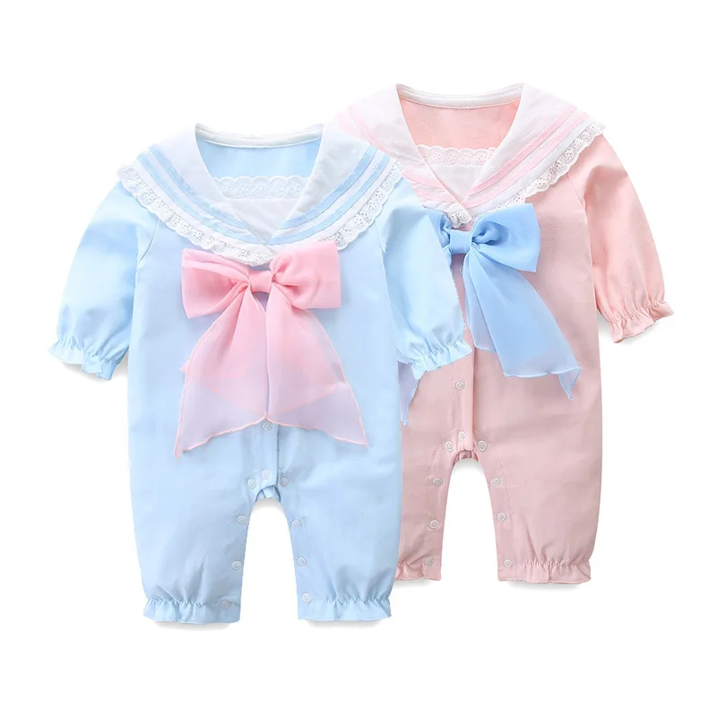 Весенняя одежда для новорожденных; Комбинезоны для девочек с длинными рукавами и матросским воротником; Комбинезоны для младенцев; Костюмы с большим бантом; 2 цвета; От 0 до 2 лет